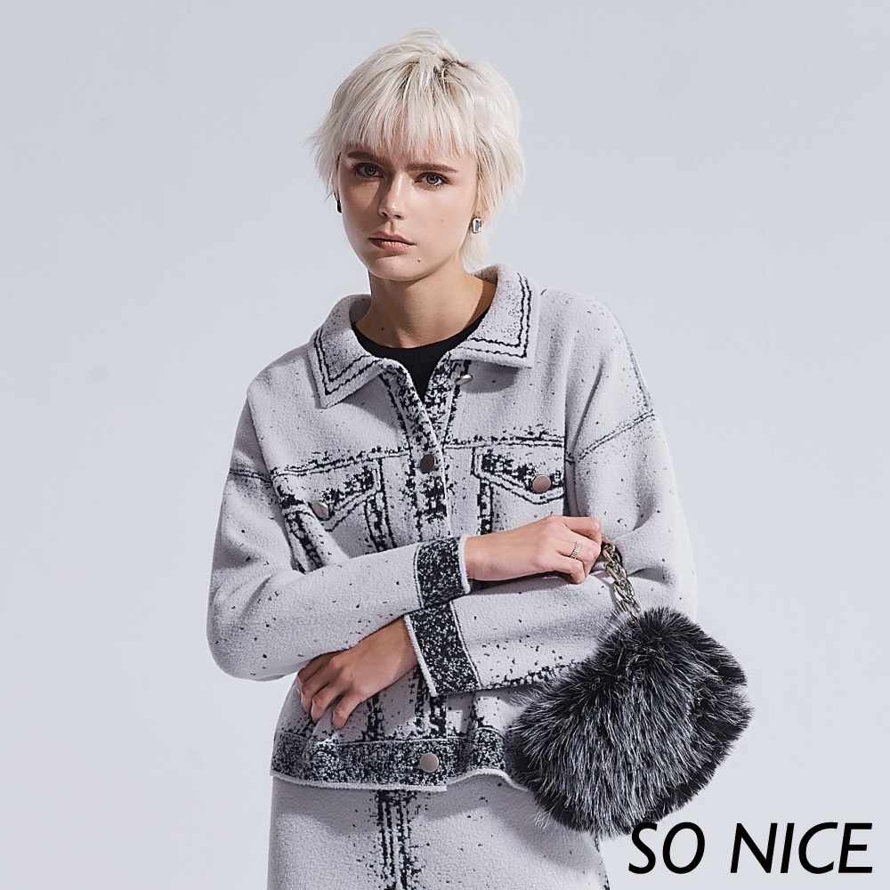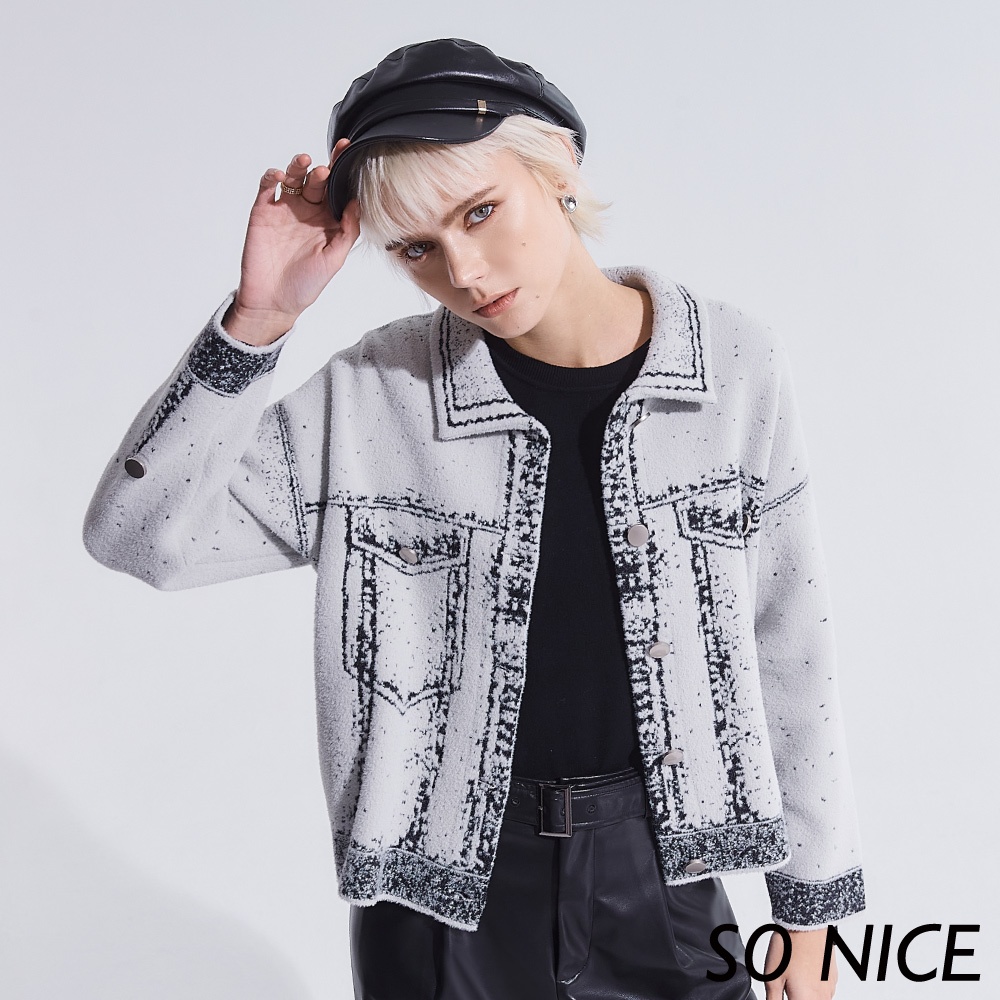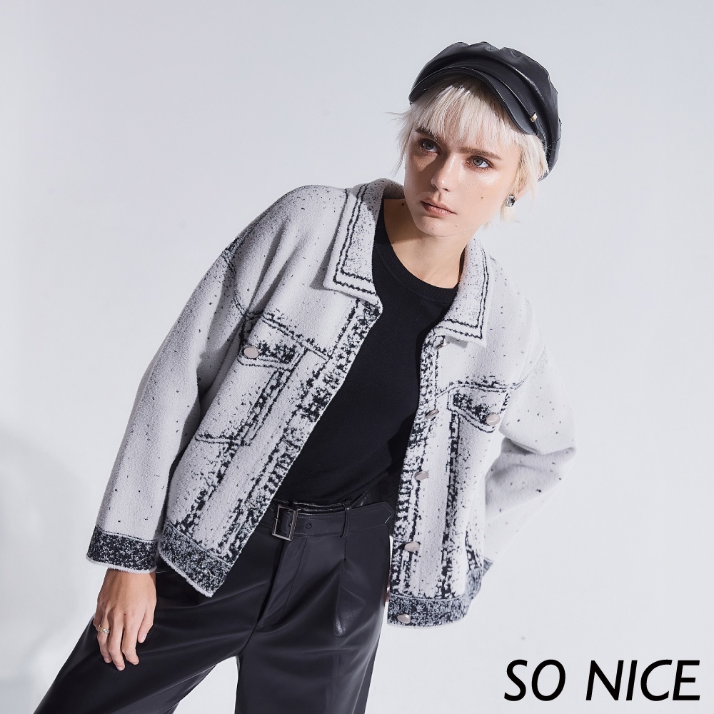 SO NICE【特惠】2D線條塗鴉風仿羊絨針織外套|都會時尚女裝 【93340039】灰,36(S)|灰,38(M)|灰,40(L)OthersSO NICE 官方旗艦店