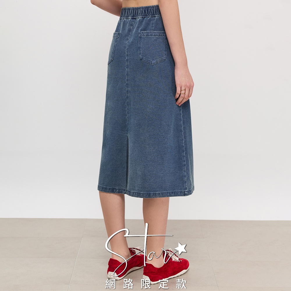 SO NICE 率性彈力腰頭後開衩牛仔長裙|深灰/藍|STAR|都會時尚女裝【7353F014】深灰,34(XS)|深灰,36(S)|深灰,38(M)|深灰,40(L)|藍,36(S)|深灰,42(XL)|藍,34(XS)|藍,38(M)|藍,40(L)|藍,42(XL)SO NICE 官方旗艦店