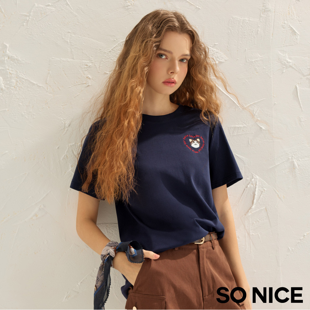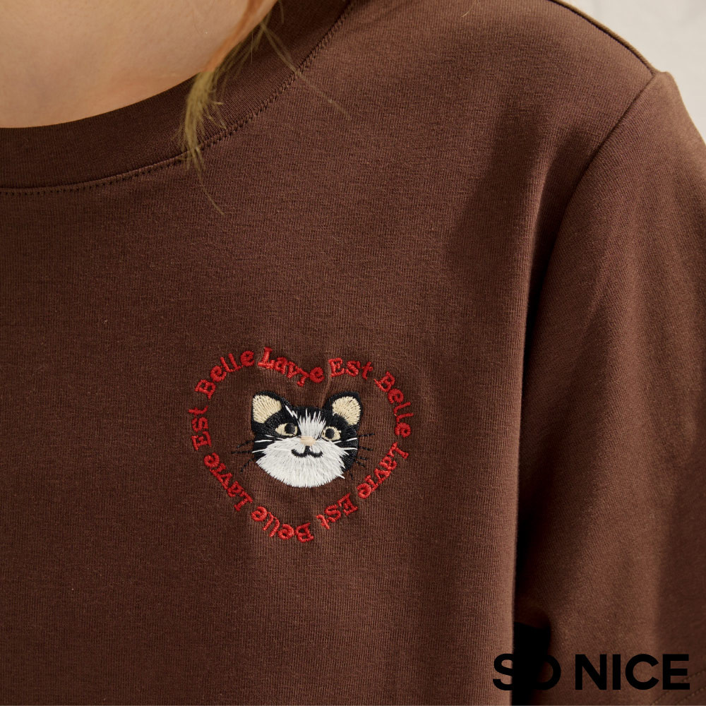 SO NICE 童趣愛心小貓刺繡棉質上衣|深藍/深咖|都會時尚女裝【58541003】深藍,36(S)|深藍,38(M)|深藍,40(L)|深咖,34(XS)|深咖,38(M)|深咖,40(L)|深藍,34(XS)|深藍,42(XL)|深咖,36(S)|深咖,42(XL)T-shirtsSO NICE 官方旗艦店