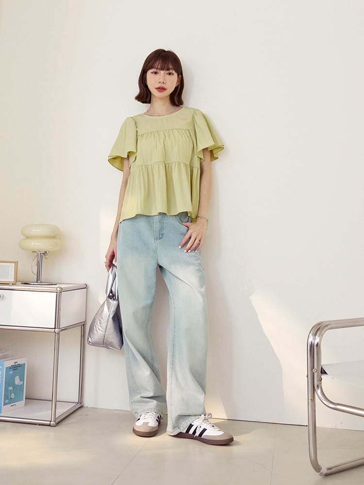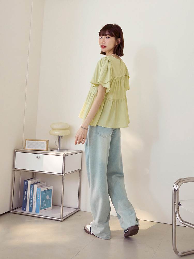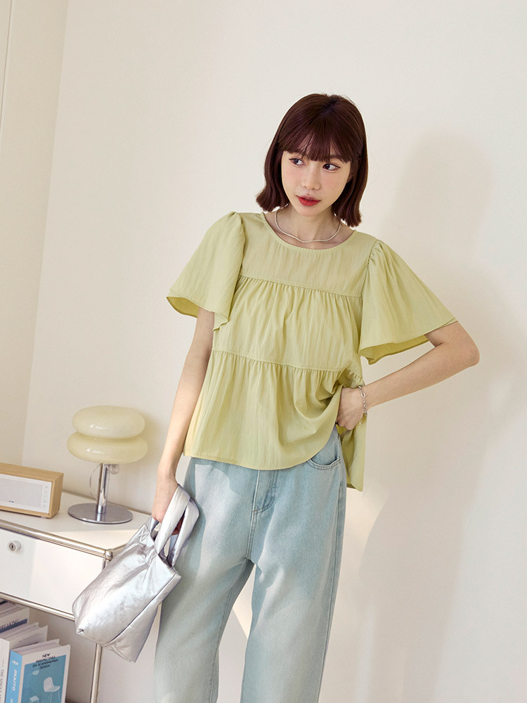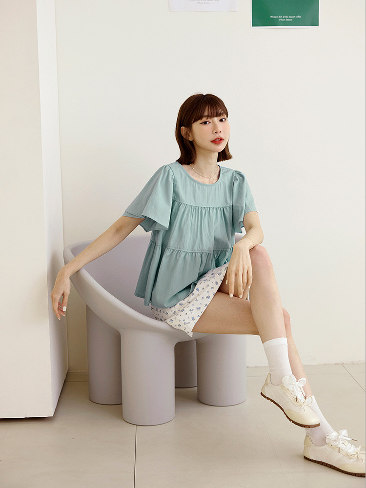 OB嚴選 層次感荷葉袖寬鬆傘襬上衣 /中大尺碼女裝/現貨《AB20106》淺水藍,M|淺水藍,L|淺水藍,XL|淺水藍,2L|淺水藍,3L|淺水藍,4L|黃綠,M|黃綠,L|黃綠,XL|黃綠,2L|黃綠,3L|黃綠,4LT-shirtsOB嚴選官方旗艦店