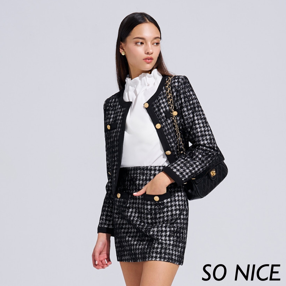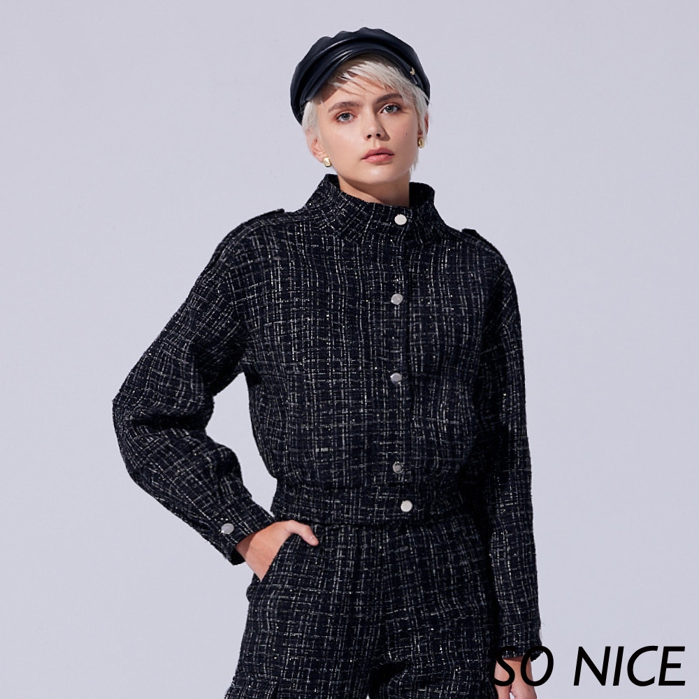 SO NICE【特惠】小香風銀蔥毛呢格紋短版外套|小香風女裝|都會時尚女裝【58345009】黑,36(S)|黑,38(M)|黑,40(L)|黑,34(XS)OthersSO NICE 官方旗艦店