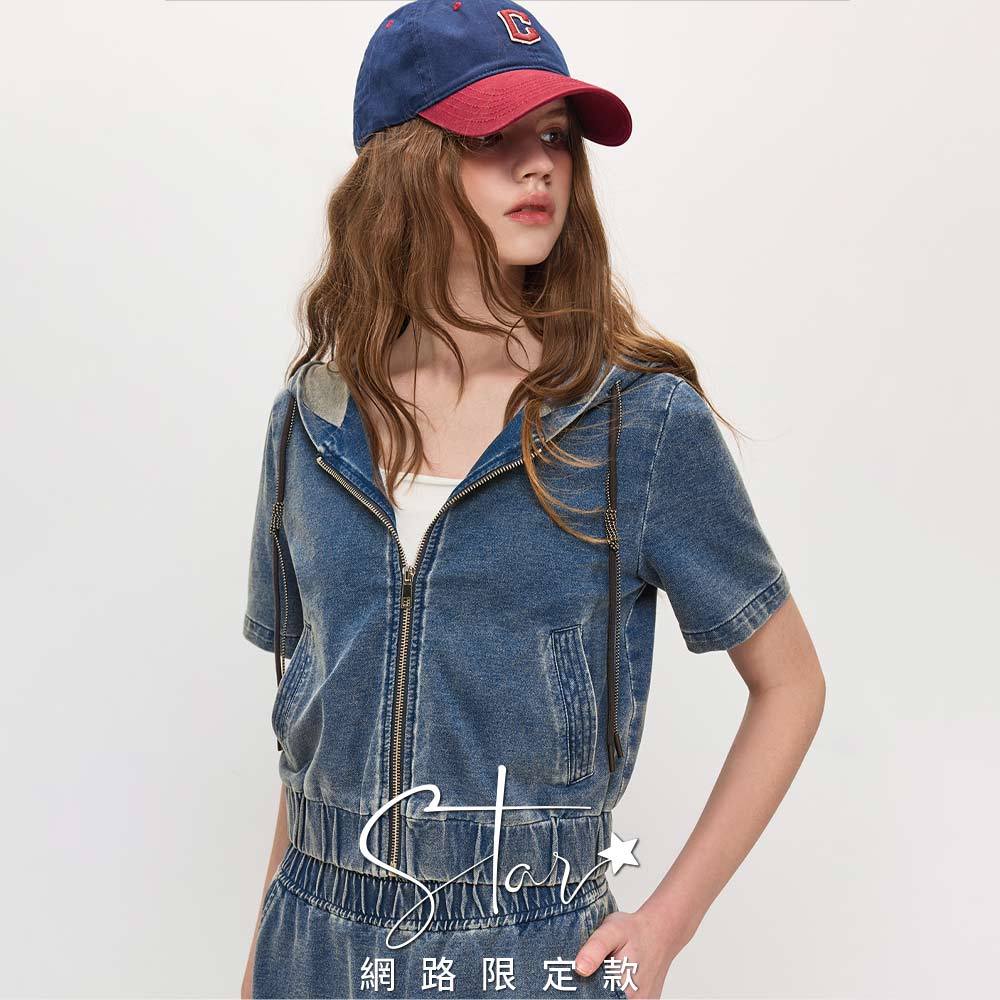 SO NICE 率性連帽水洗感牛仔短袖外套|深灰/藍|STAR|都會時尚女裝【7353F013】深灰,36(S)|深灰,38(M)|深灰,40(L)|藍,36(S)|藍,40(L)|藍,42(XL)|深灰,34(XS)|藍,34(XS)|藍,38(M)|深灰,42(XL)JacketsSO NICE 官方旗艦店
