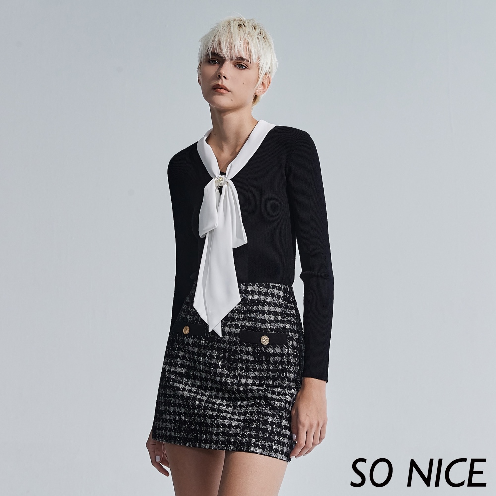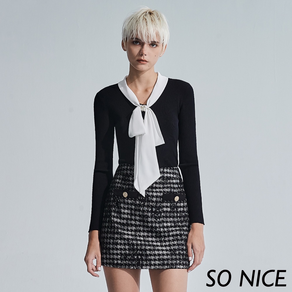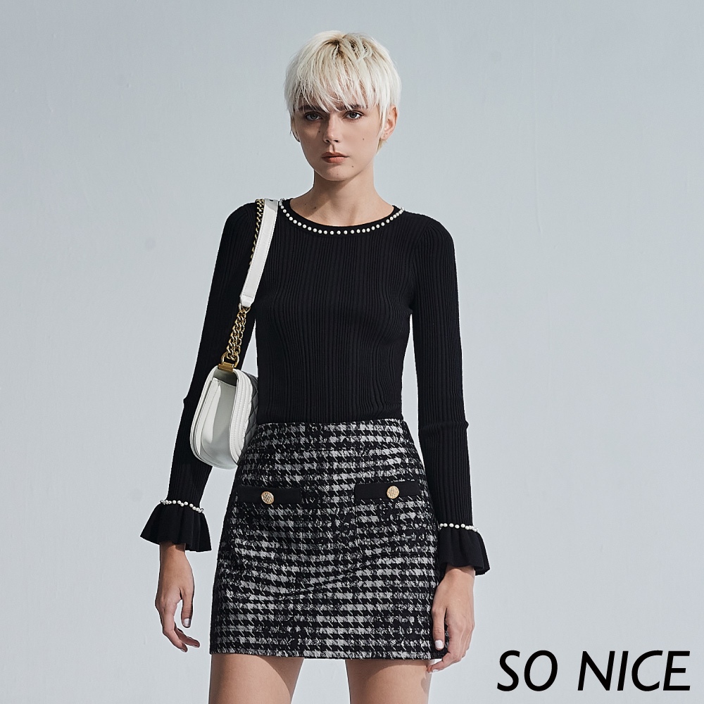 SONICE【特惠】千鳥格紋蕾絲壓花短裙|都會時尚女裝【75343014】黑,38(M)|黑,40(L)|黑,42(XL)|黑,34(XS)|黑,36(S)SO NICE 官方旗艦店