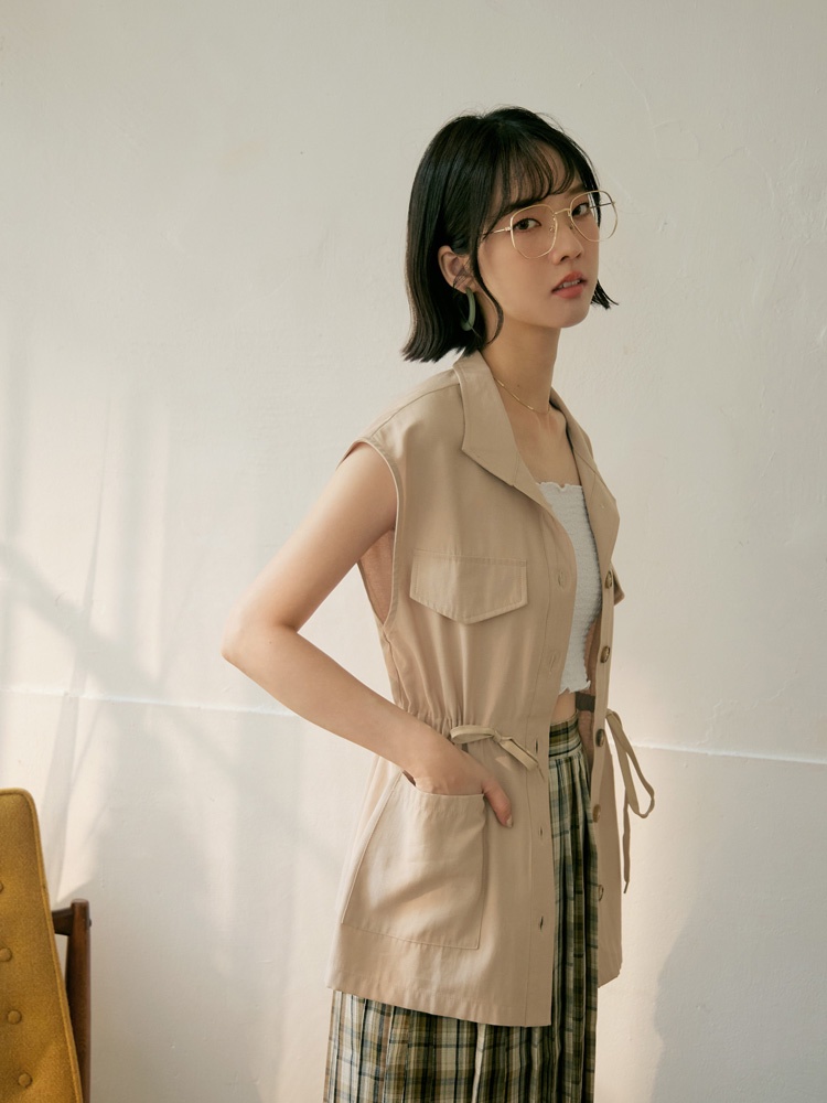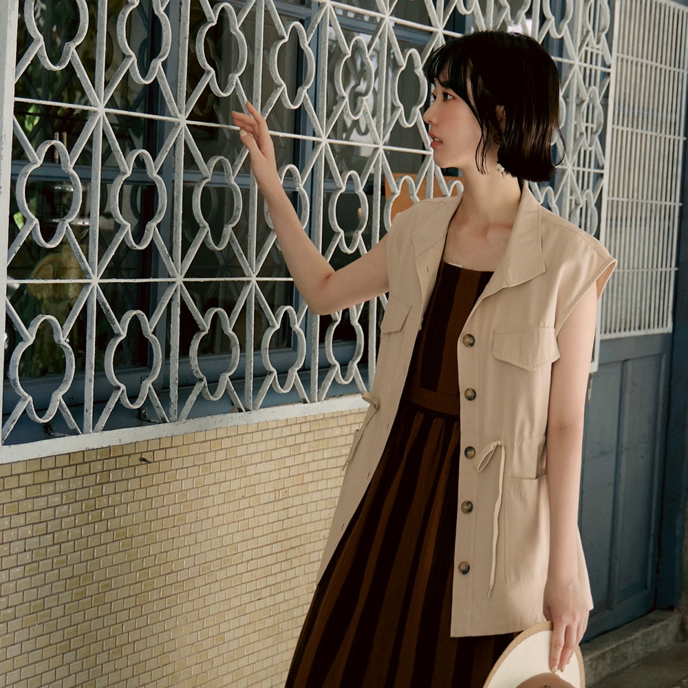 OB嚴選 翻領排釦腰抽繩綁帶長版背心 《EA3503》日系/大尺碼/現貨/女裝軍綠,S|軍綠,L|軍綠,3L|卡其杏,M|卡其杏,L|卡其杏,3L|軍綠,M|軍綠,XL|軍綠,2L|卡其杏,S|卡其杏,XL|卡其杏,2LVestsOB嚴選官方旗艦店