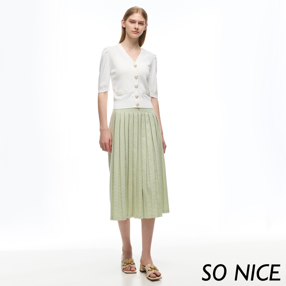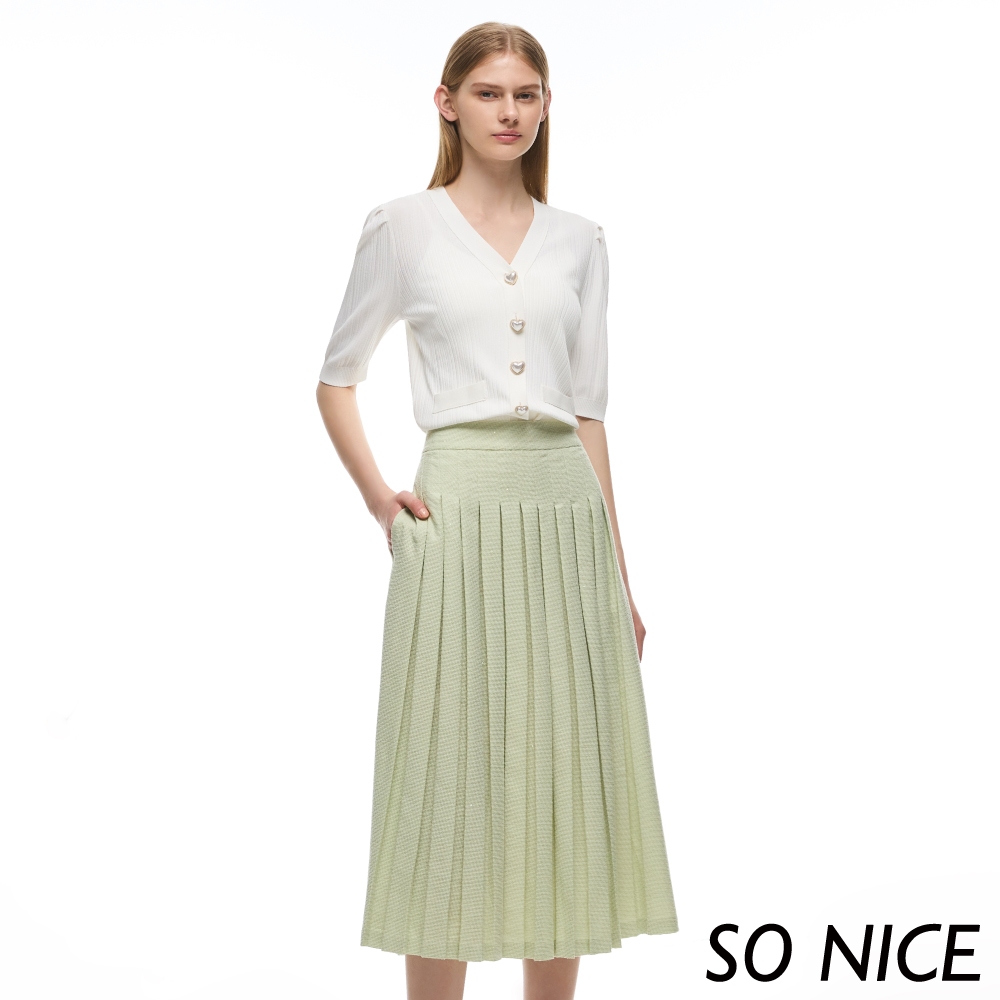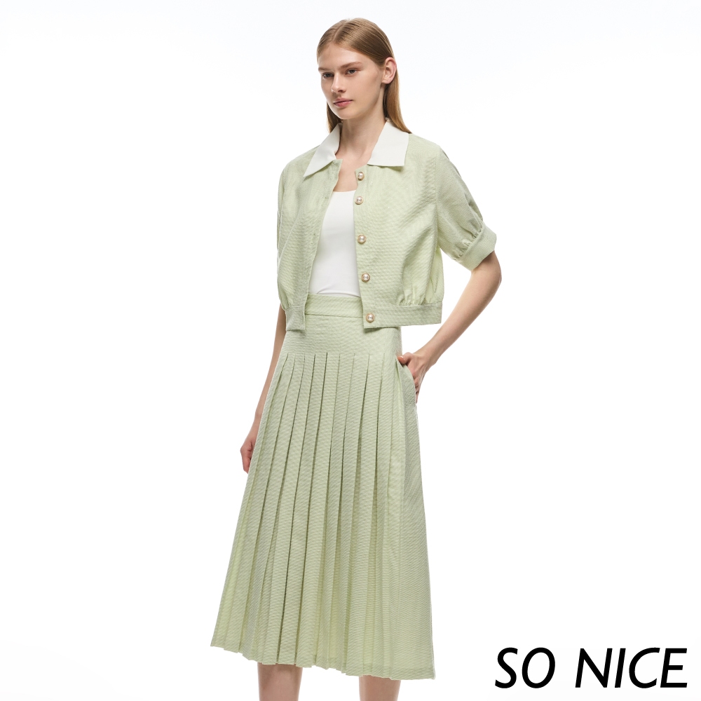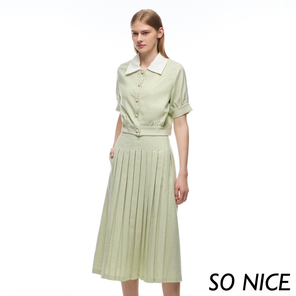 SO NICE【特惠】淡薄荷綠小香風百摺長裙|都會時尚女裝【29333017】