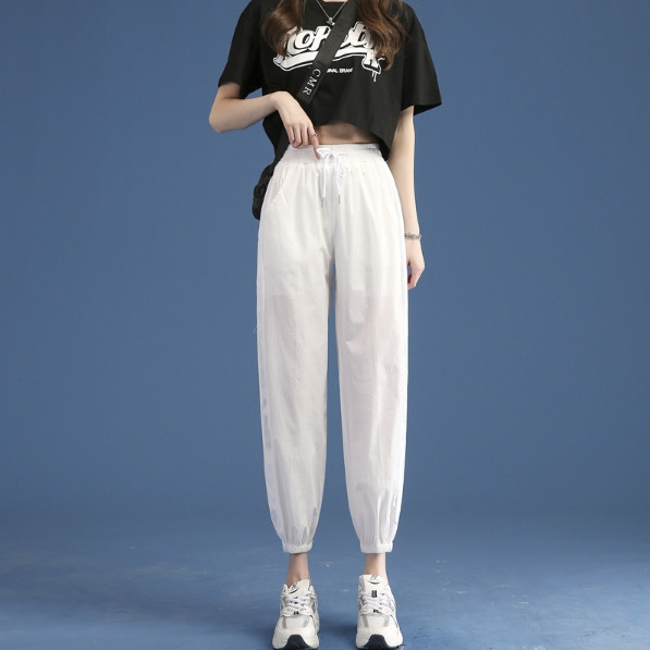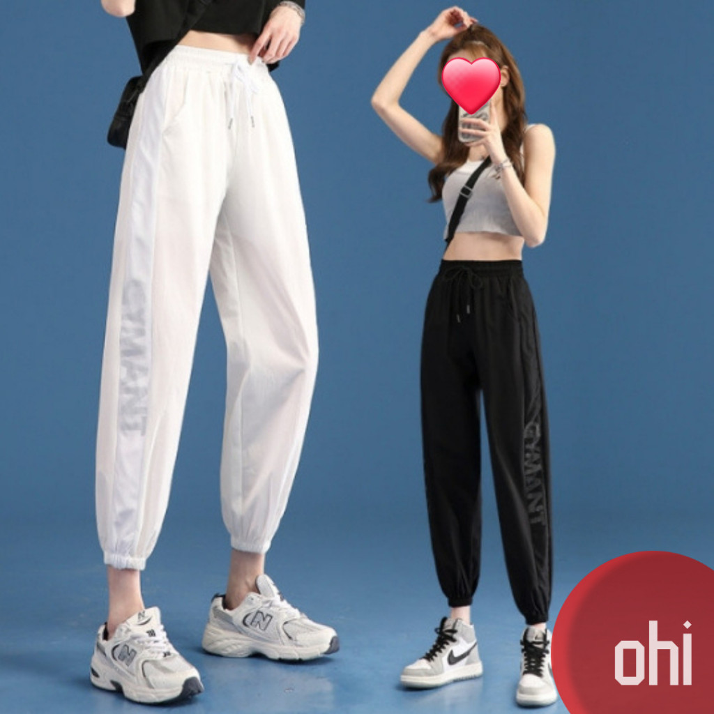 【ohi】冰絲速乾運動褲 新款韓版韓系女裝 褲子 加大碼薄款防曬褲 寬鬆束腳哈倫休閒褲 女裝 GPN9364黑色,M|黑色,L|黑色,XL|黑色,2XL|黑色,3XL|黑色,4XL|白色(有內裡),M|白色(有內裡),L|白色(有內裡),XL|白色(有內裡),2XL|白色(有內裡),3XL|白色(有內裡),4XLPantsOHI衣著