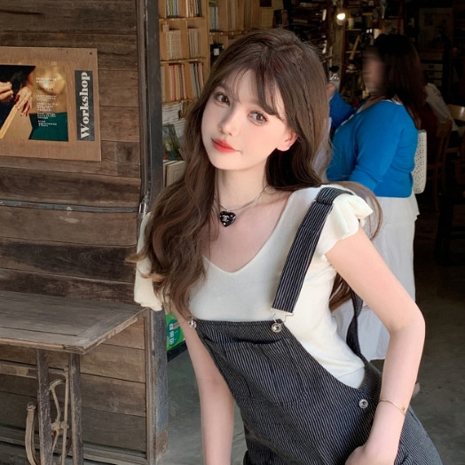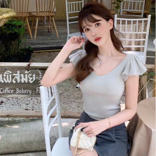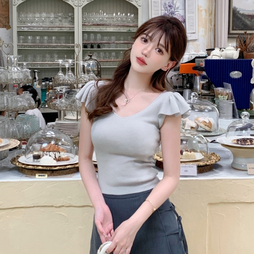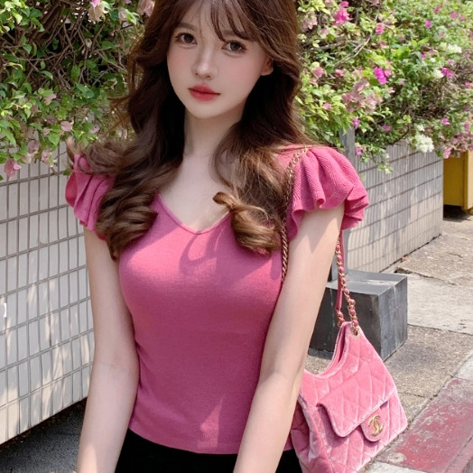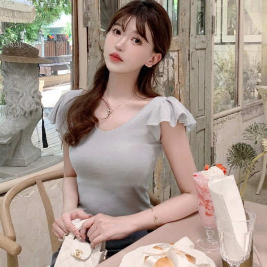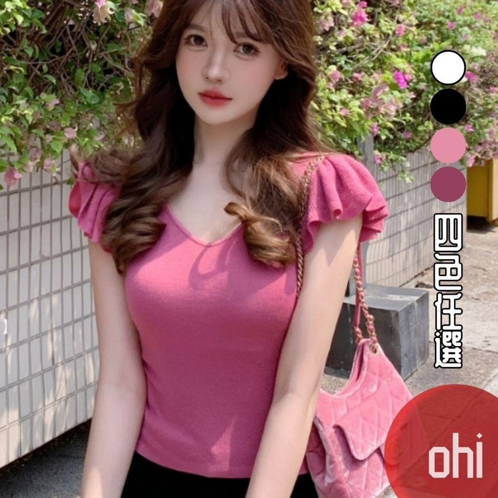 【ohi】小飛袖薄款短袖T恤 V領針織打底上衣 顯瘦上衣 韓版上衣 簡約上衣 夏天衣服 女裝 GWD5657白色,均碼-F(40-65KG可穿)|枚紅,均碼-F(40-65KG可穿)|灰色,均碼-F(40-65KG可穿)|粉色,均碼-F(40-65KG可穿)T-shirtsOHI衣著