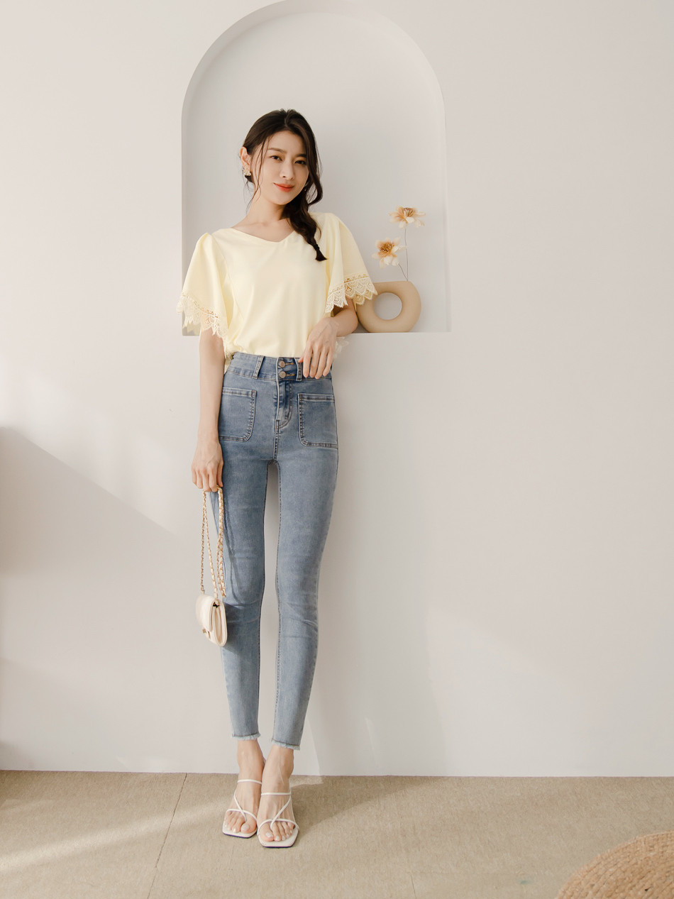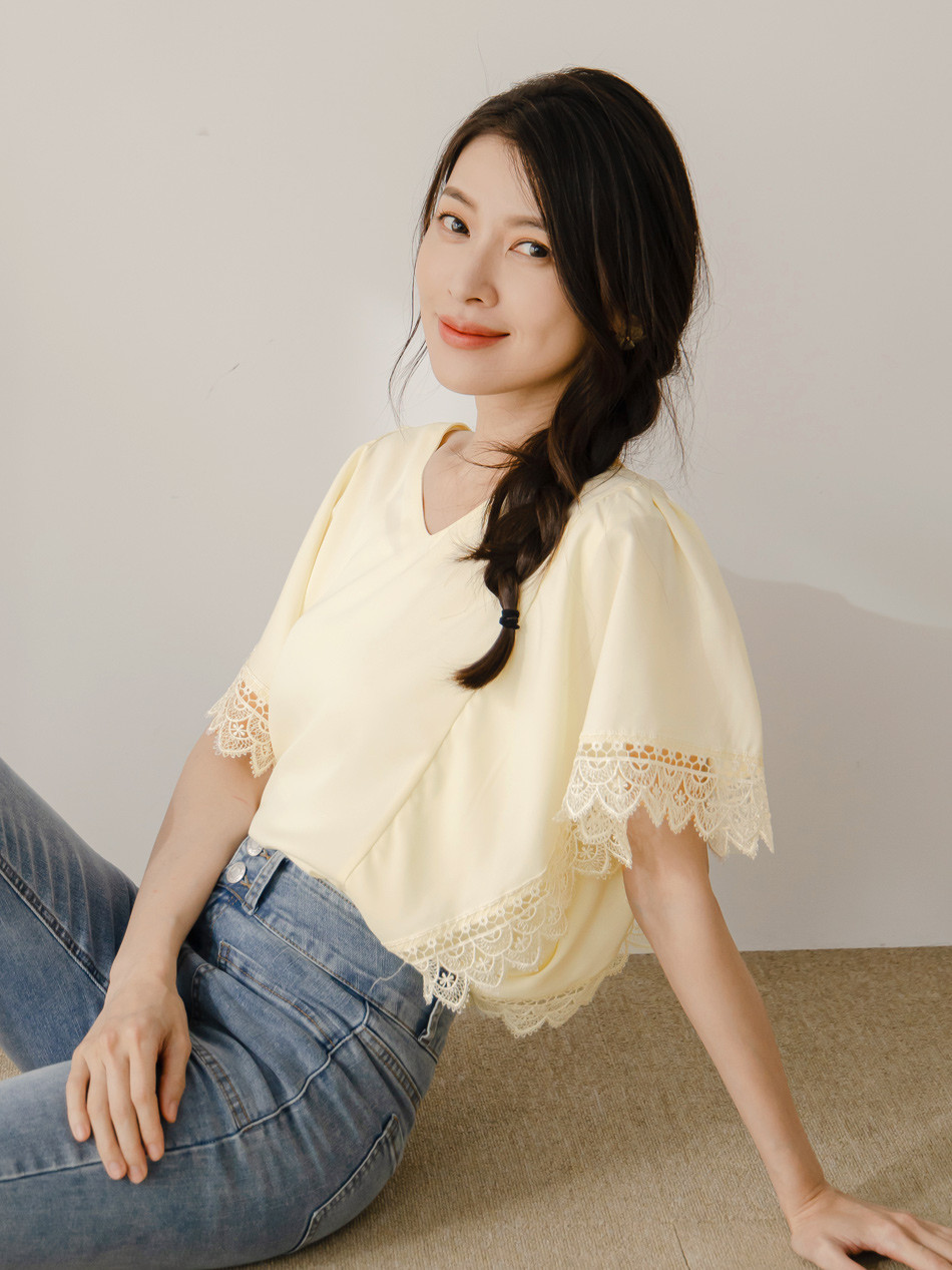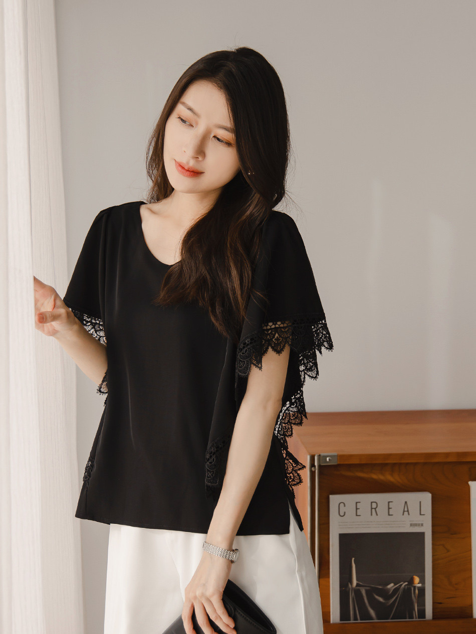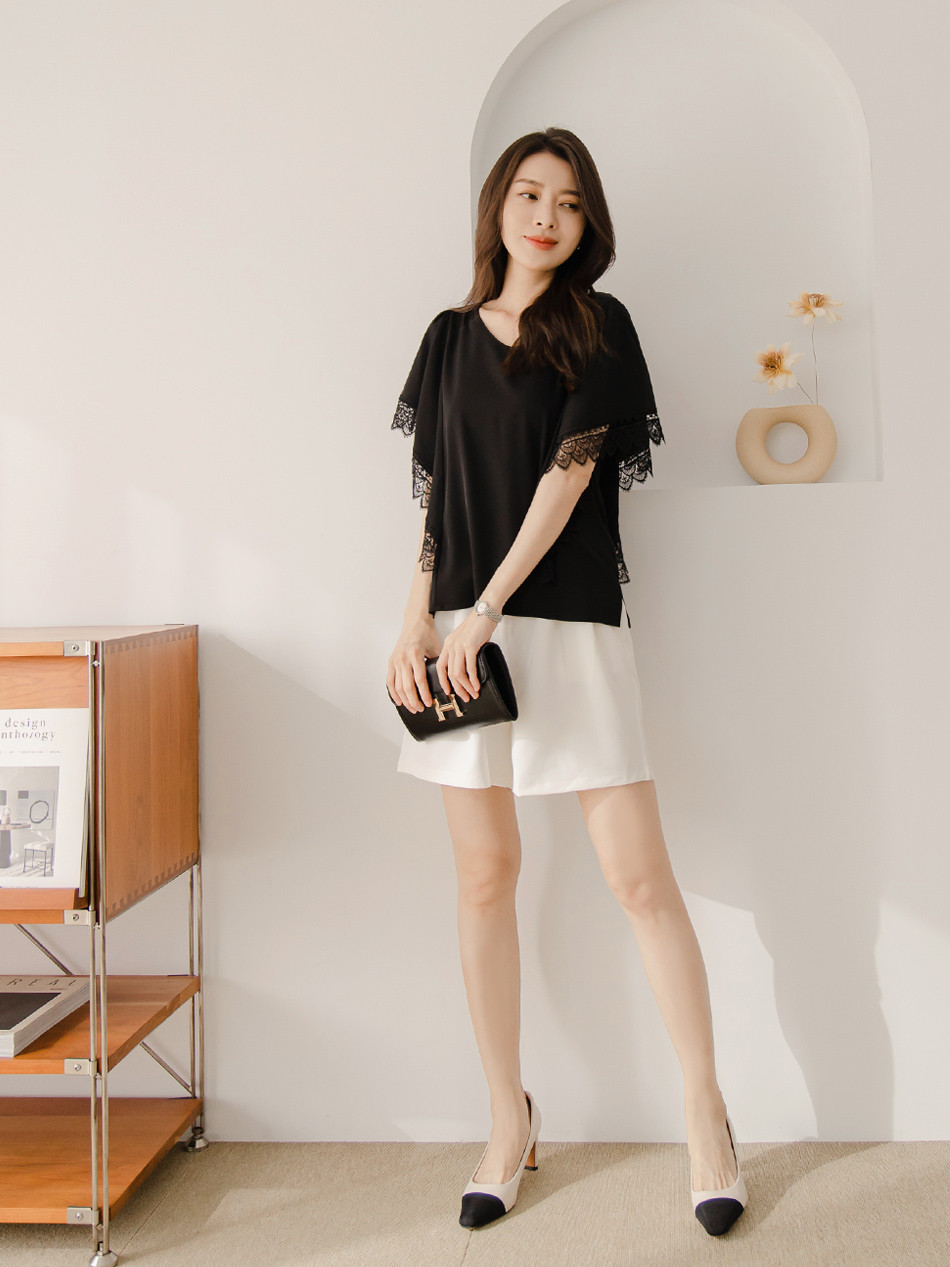 OB嚴選 小V臉.V領傘袖蕾絲花邊不易皺上衣 《AB18414》黑,XL|黑,2L|黑,3L|象牙白,S|象牙白,M|象牙白,L|象牙白,XL|象牙白,2L|象牙白,3L|黑,S|黑,M|黑,LT-shirtsOB嚴選官方旗艦店