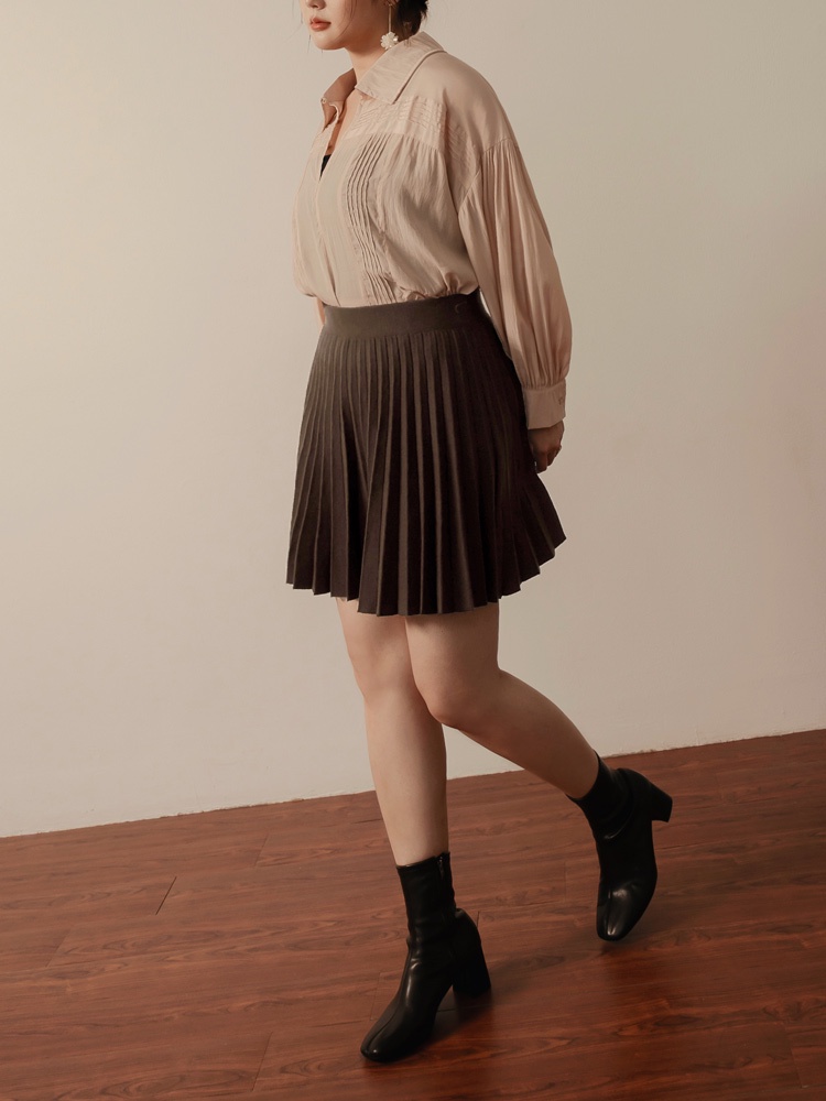 OB嚴選 雲朵自訂款-針織腰鬆緊A字百褶短裙 《FA2825》大尺碼/現貨/女裝黑,XL|黑,2L|黑,3L|咖啡,XL|咖啡,2L|咖啡,3LOB嚴選官方旗艦店
