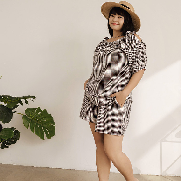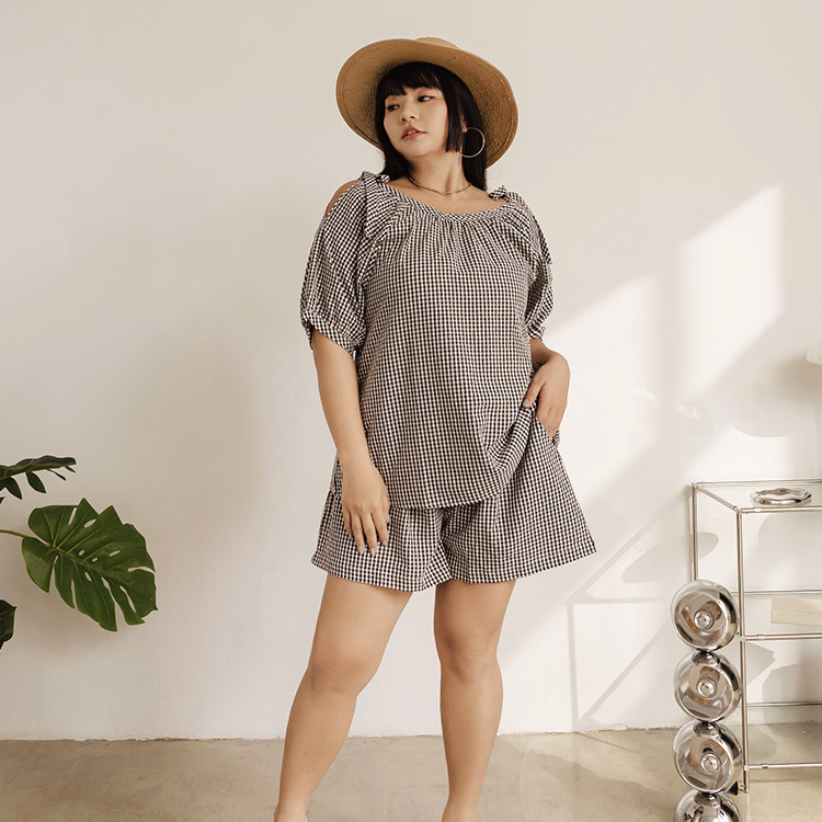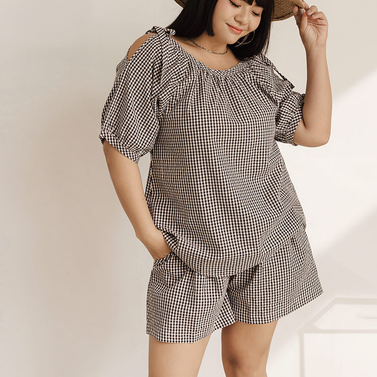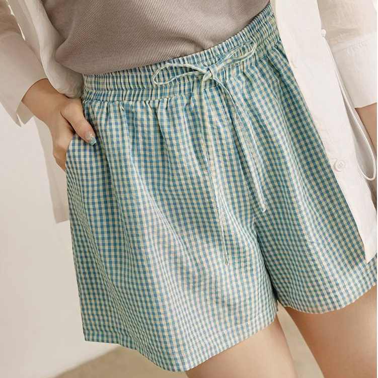 OB嚴選 雲朵自訂款-格紋綁帶鬆緊A字短褲 《BA7526》大尺碼/女裝/現貨黑,XL|黑,2L|黑,3L|藍,XL|藍,2L|藍,3LShortsOB嚴選官方旗艦店