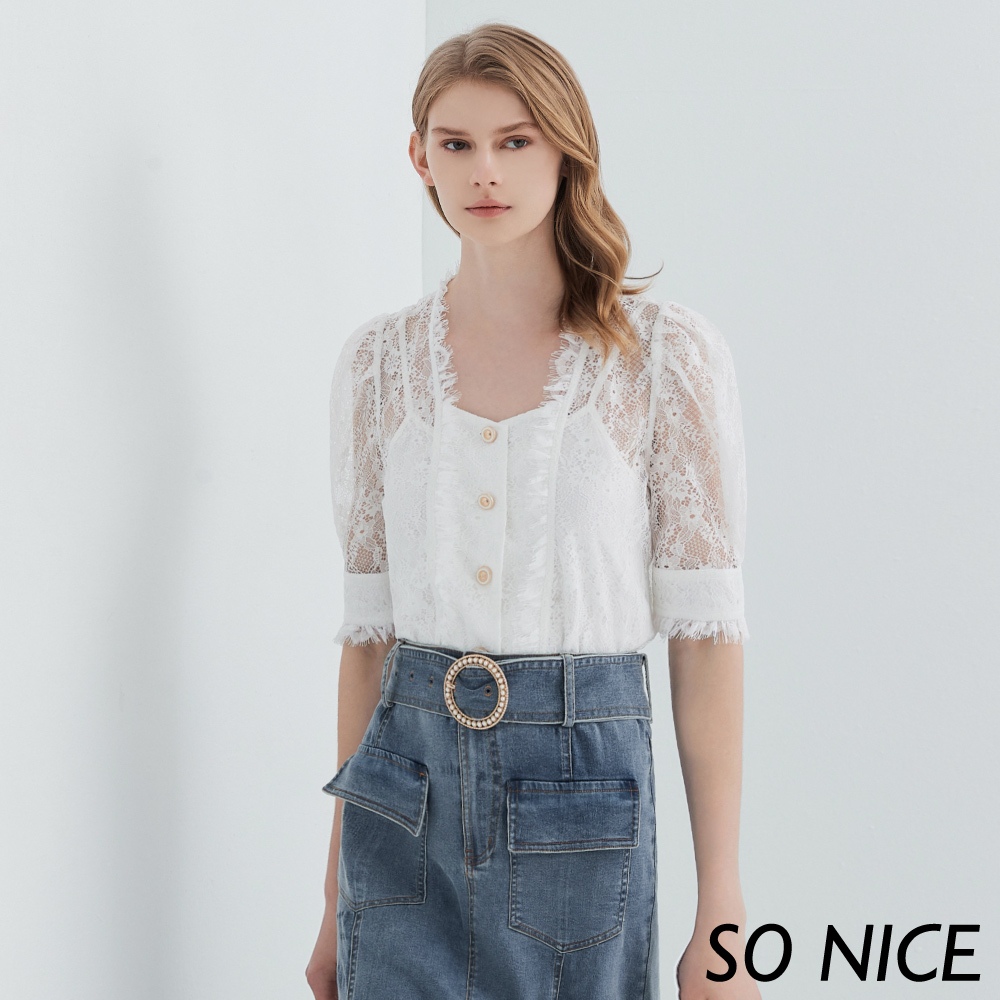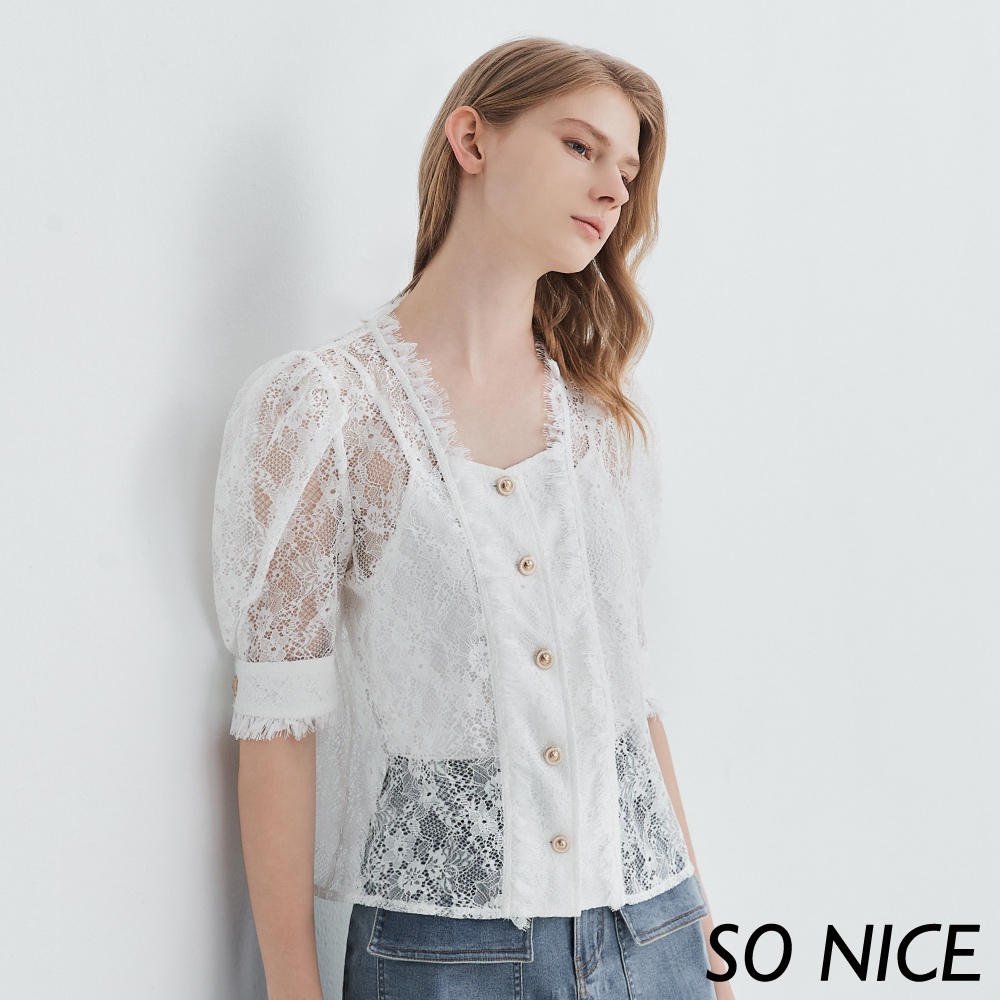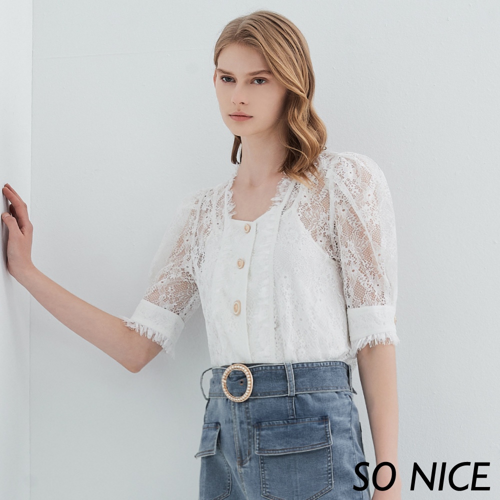 SO NICE【特惠】浪漫鏤空蕾絲上衣【58331015】白,34(XS)|白,36(S)|白,38(M)|白,40(L)|白,42(XL)T-shirtsSO NICE 官方旗艦店