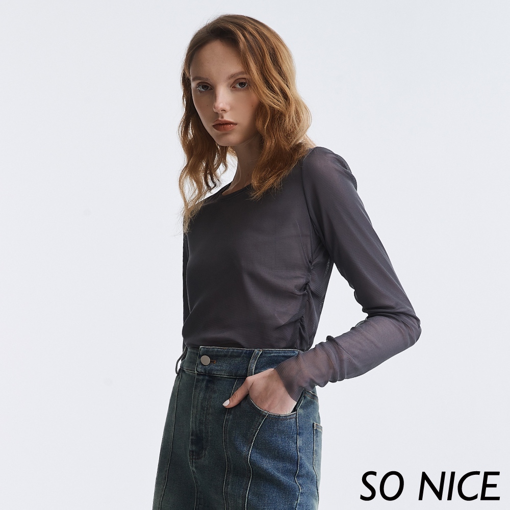 SO NICE【特惠】隨性抽皺透膚網布上衣|都會時尚女裝【73341001】深灰,36(S)|深灰,38(M)|深灰,40(L)|粉,40(L)|深灰,34(XS)|深灰,42(XL)|粉,34(XS)|粉,36(S)|粉,38(M)|粉,42(XL)OthersSO NICE 官方旗艦店