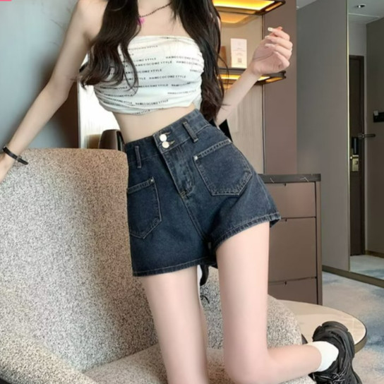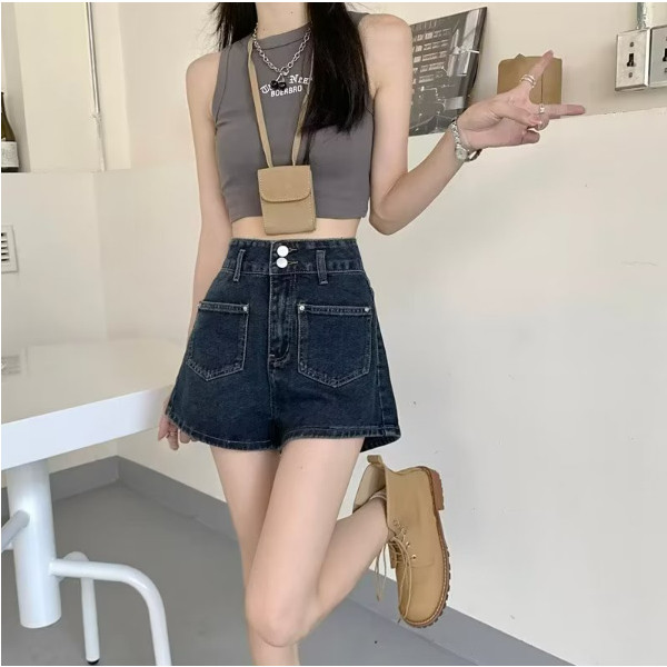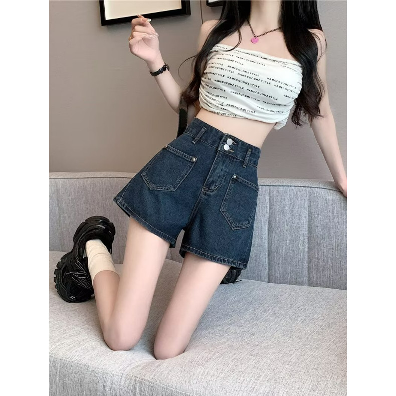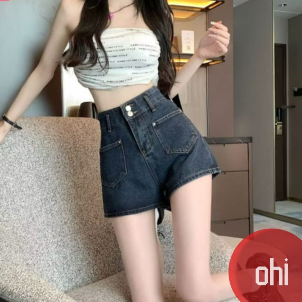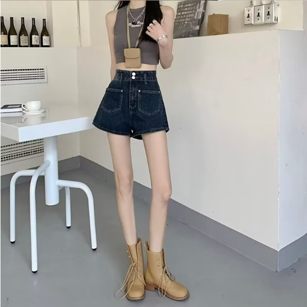 【ohi】牛仔 顯瘦短褲女生 a字闊腿秋季 新款 高腰 超短褲 寬鬆 外穿 熱褲子(XGJL167)藍色,2XL|藍色,S|藍色,M|藍色,L|藍色,XLShortsOHI衣著