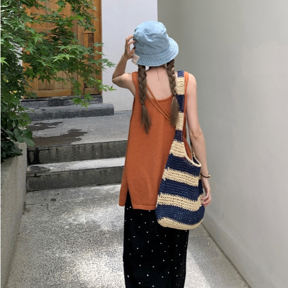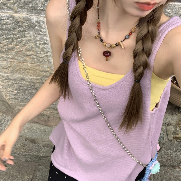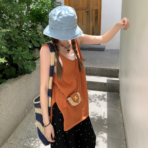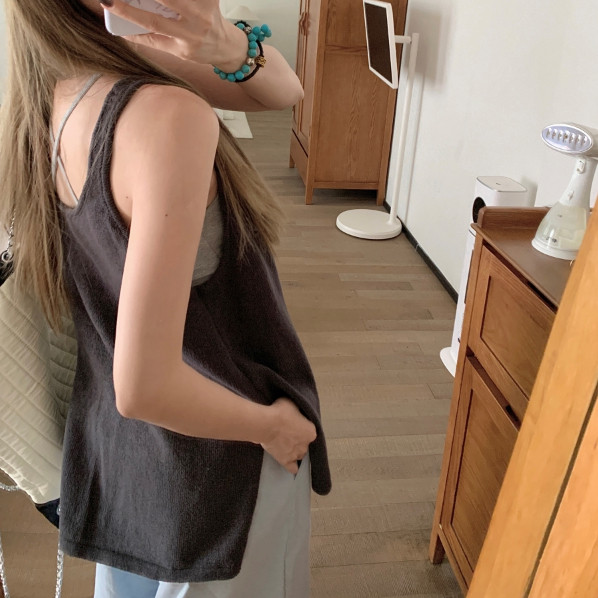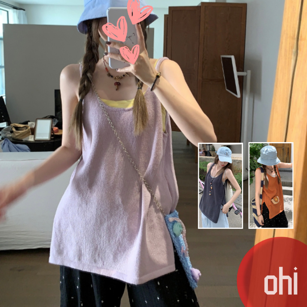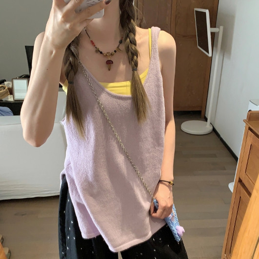 【ohi】純色簡約不規則疊穿針織背心 寬鬆開叉休閒上衣 不含內搭 夏天衣服 女裝 GWH6501灰色,均碼-65KG以內都可穿|橙色,均碼-65KG以內都可穿|紫色,均碼-65KG以內都可穿Tanks & CamisolesOHI衣著