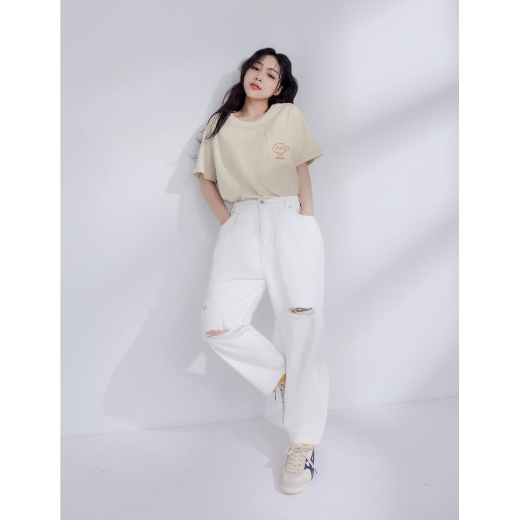 MIUSTAR 正韓.愛心躲貓貓口袋反摺袖棉質上衣(共3色)0627 預購【NL4587RE】粉F|藍F|杏FT-shirtsMIUSTAR