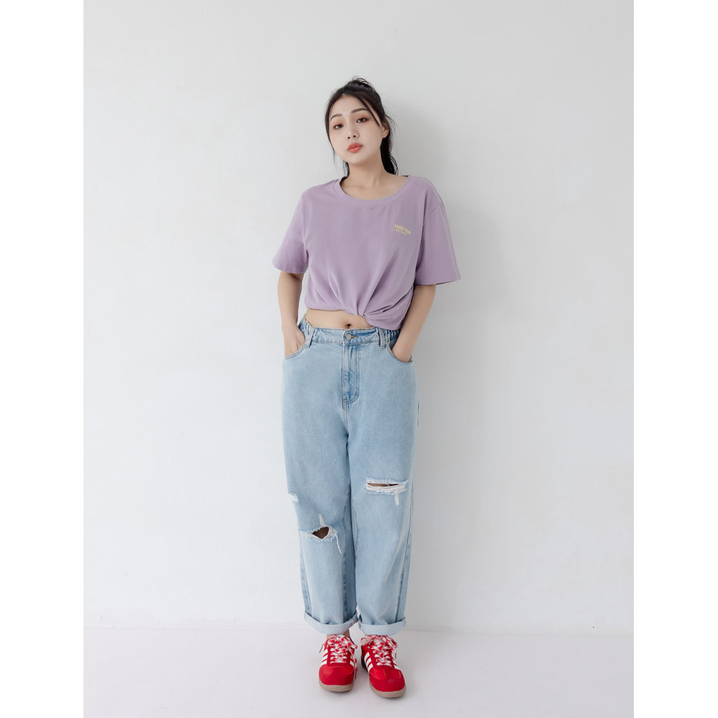 MIUSTAR 正韓.SEAWATER噴墨感下擺捲邊寬版精梳棉短T(共4色)0409 預購【NP0559RE】白F|紫F|綠F|卡FT-shirtsMIUSTAR
