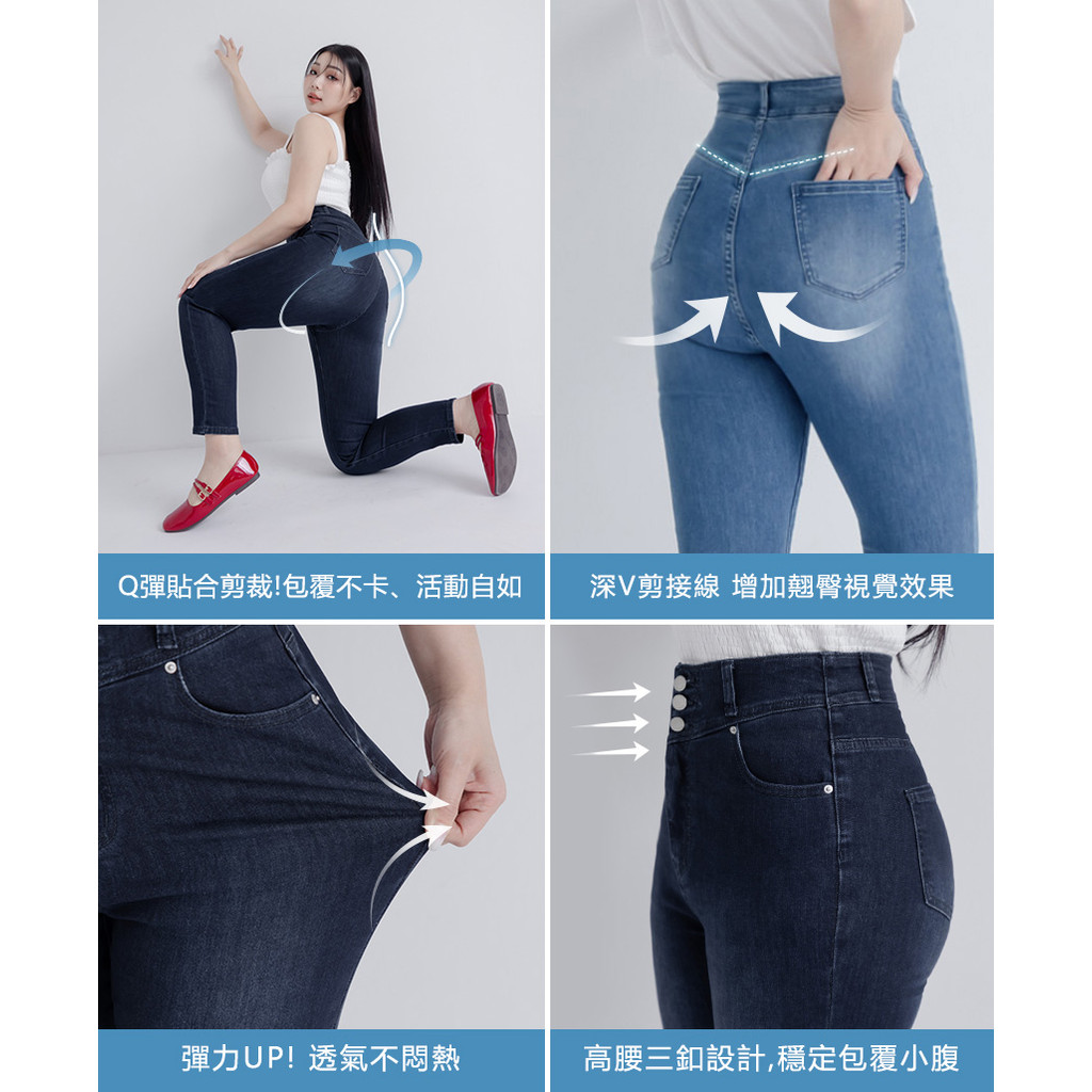 【PolyLulu】 科技涼感修身牛仔褲 中大尺碼褲子 深藍色L|XL|2XL|3XL|4XLPantsPOLY LULU丨BEAUTY HAS NO SIZE 中大尺碼女裝
