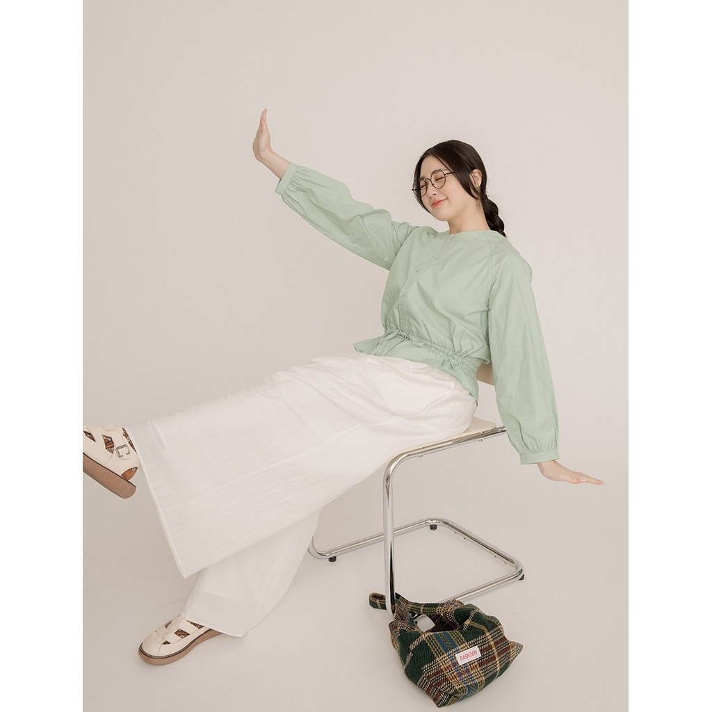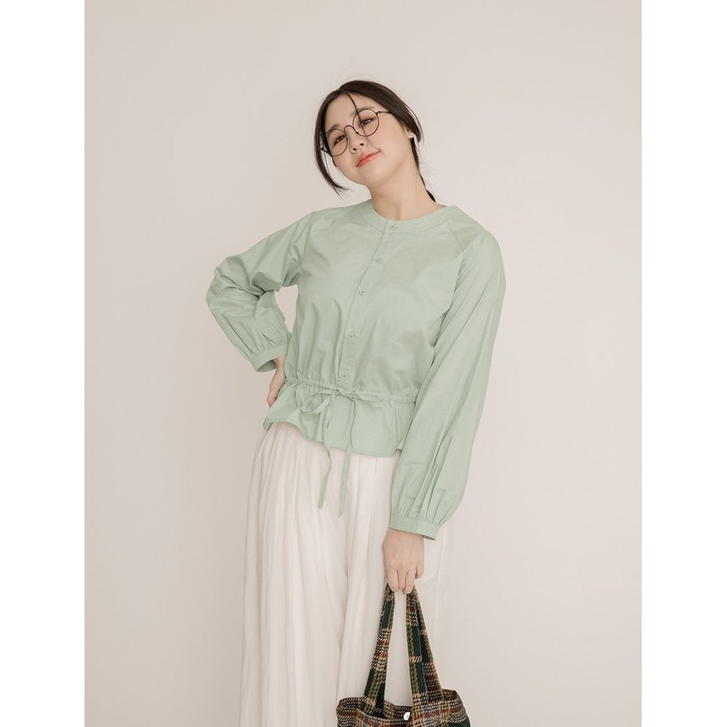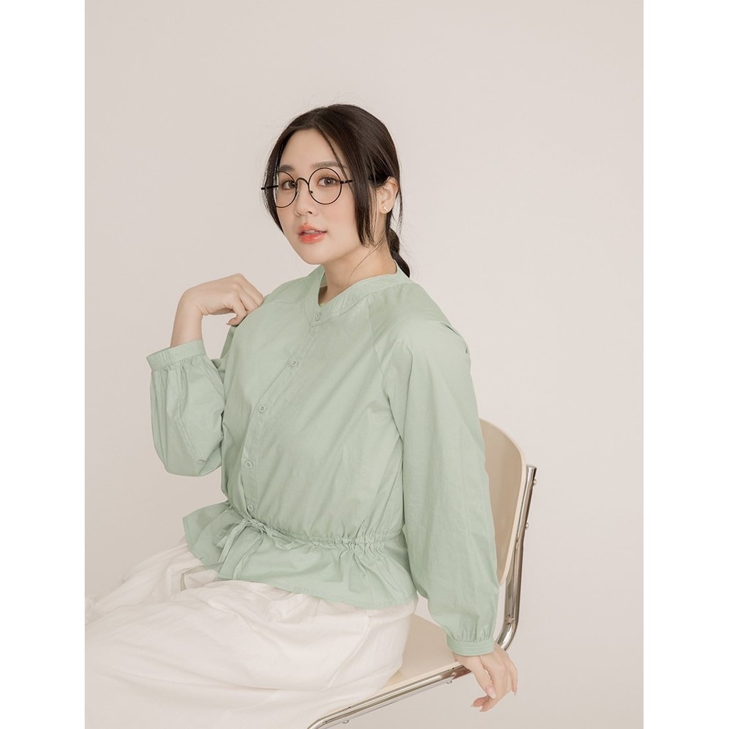 【PolyLulu】 MORI.清新圓領下擺抽繩長袖襯衫 中大尺碼上衣 綠色L|XL|2XL|3XLShirts & BlousesPOLY LULU丨BEAUTY HAS NO SIZE 中大尺碼女裝