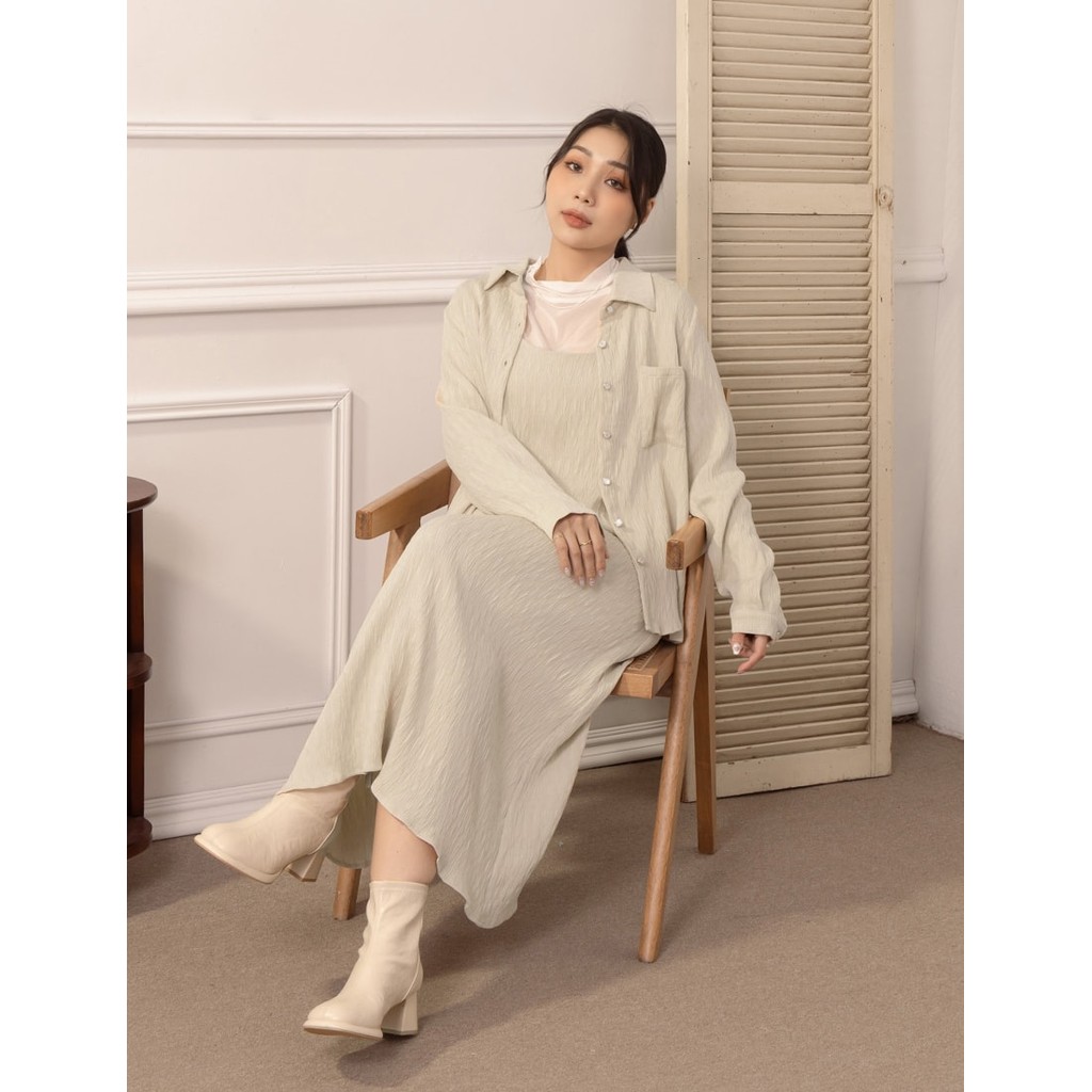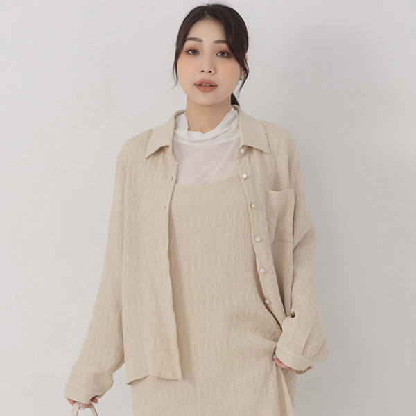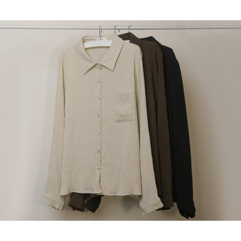 【PolyLulu】 MISS.韓系氣質貝殼釦皺皺長袖襯衫 中大尺碼上衣 杏色XL|2XL|3XL|LShirts & BlousesPOLY LULU丨BEAUTY HAS NO SIZE 中大尺碼女裝