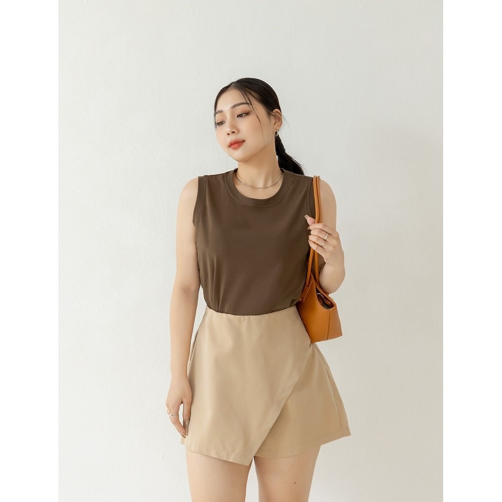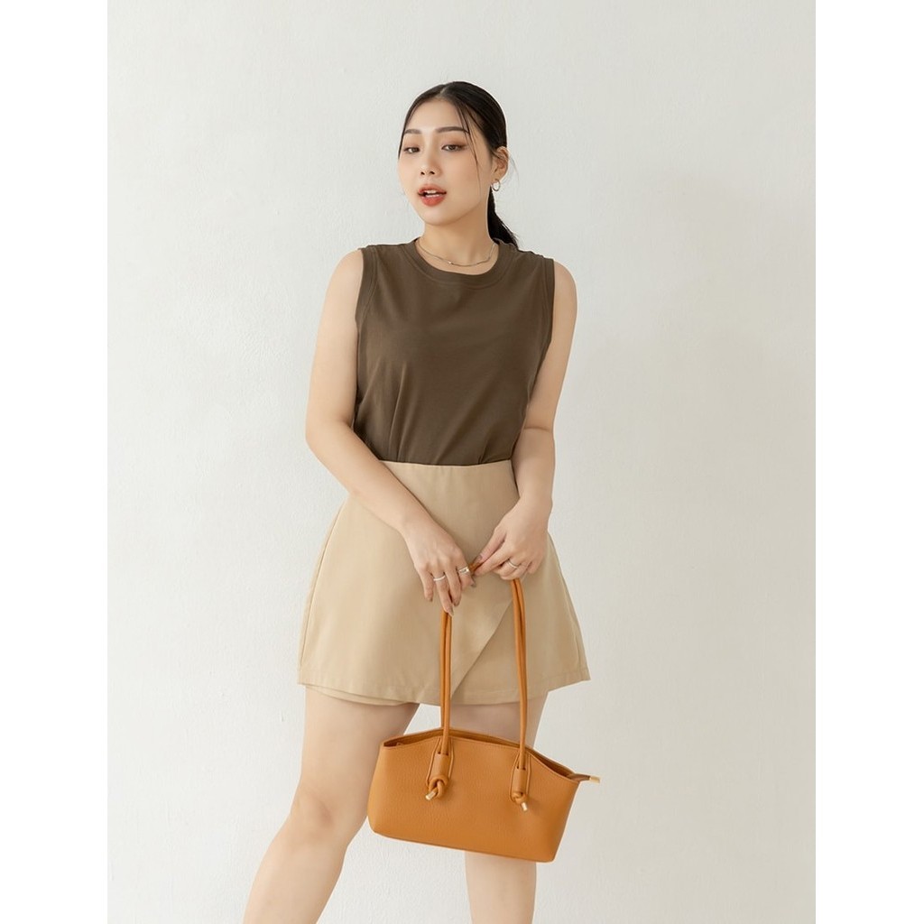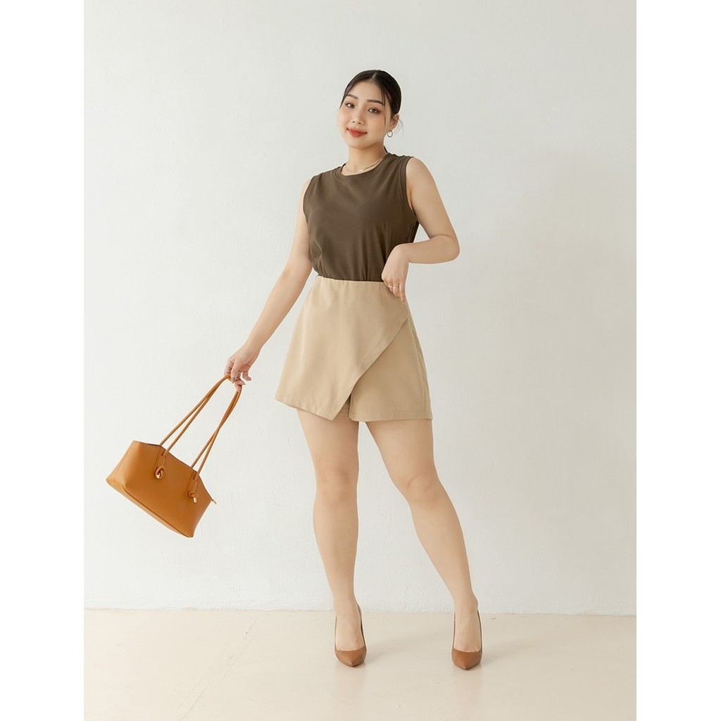 【PolyLulu】 MISS.質感設計款小姐姐斜切片不對稱褲裙 中大尺碼褲子 卡其色L|XL|2XL|3XLShortsPOLY LULU丨BEAUTY HAS NO SIZE 中大尺碼女裝