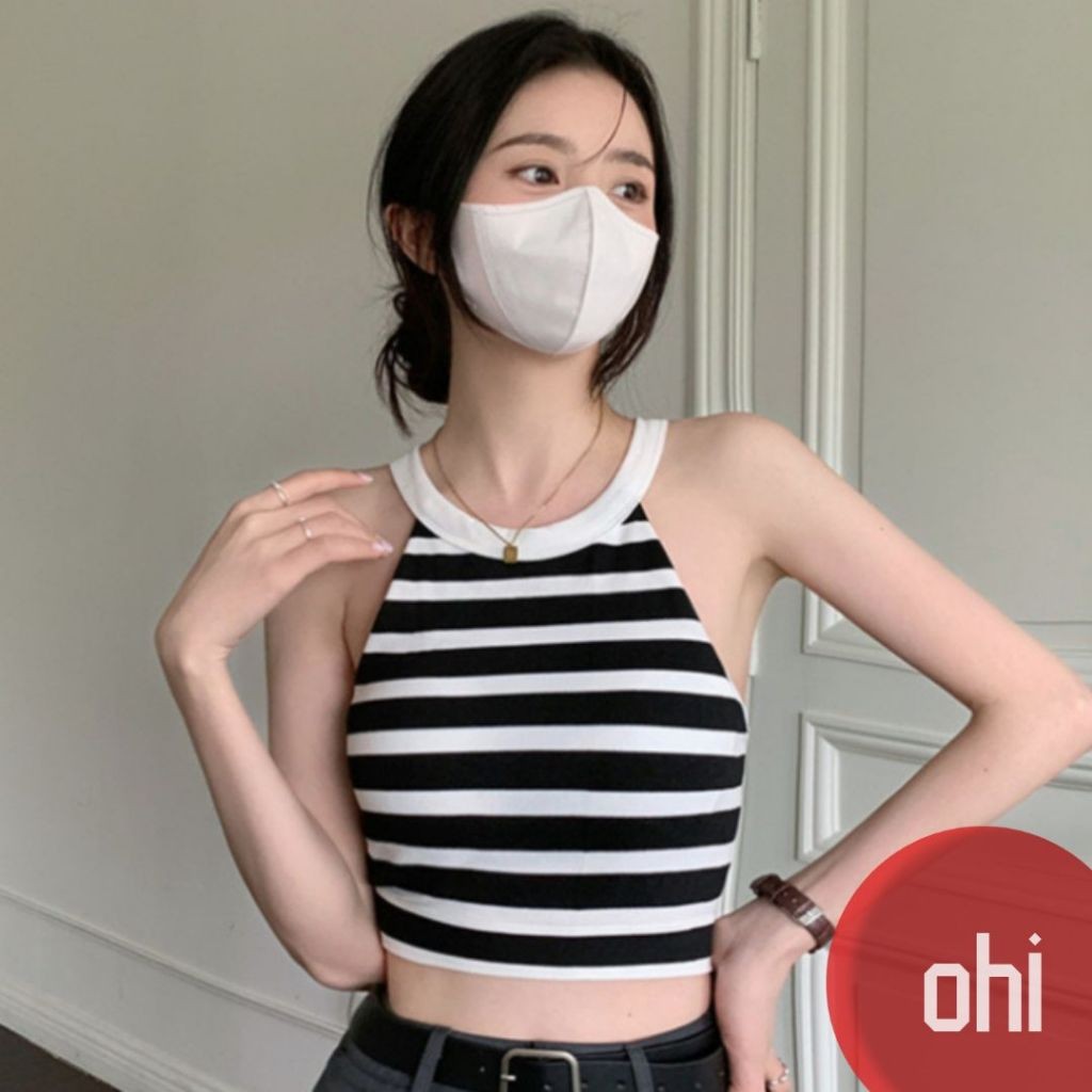 【ohi】條紋削肩掛脖美背背心無袖上衣 小可愛 不跑杯 免穿內衣 胸墊 運動內衣GVY-R1161白色|黑色|卡其|深灰|黑白條紋|黑紫條蚊Tanks & CamisolesOHI衣著