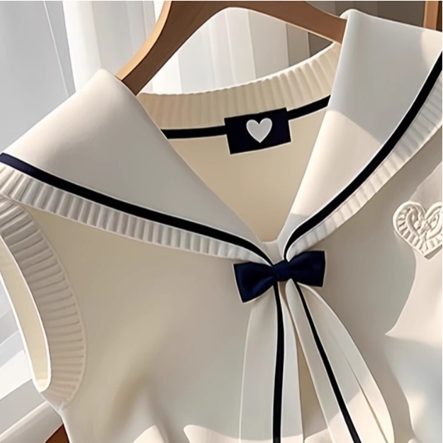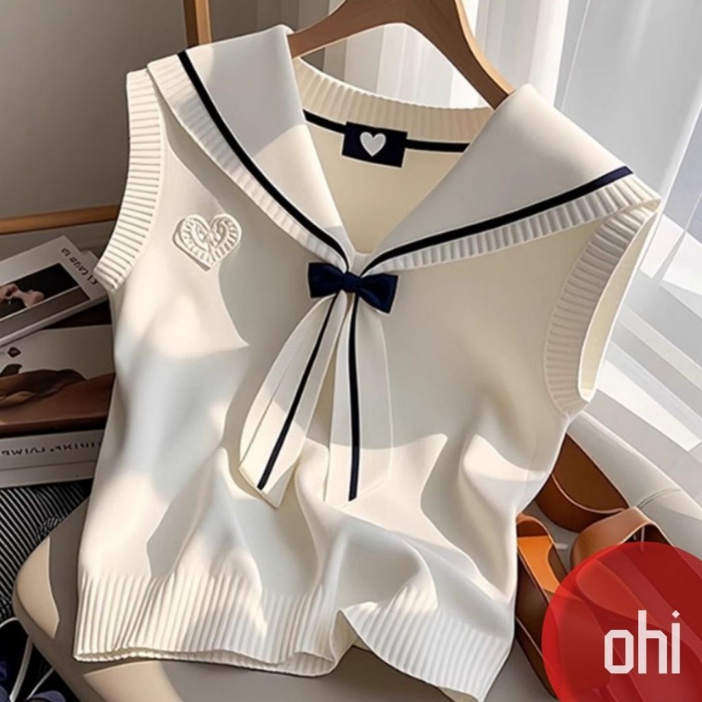 【ohi】海軍領蝴蝶結扭結針織背心 無袖上衣 韓系穿搭 女生上衣 針織上衣 女裝 顯瘦上衣 韓版上衣 GWD6589白色,F碼(40-65KG可穿)OthersOHI衣著