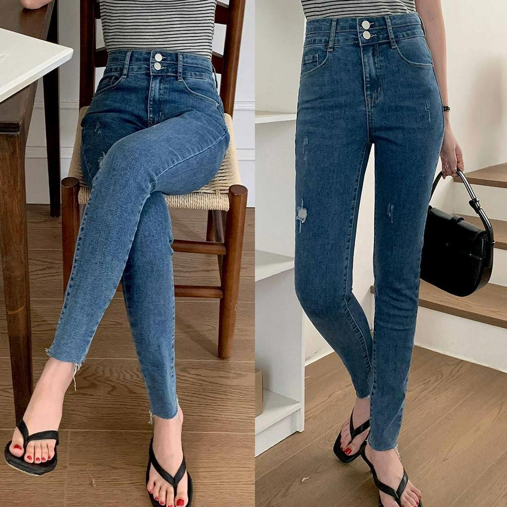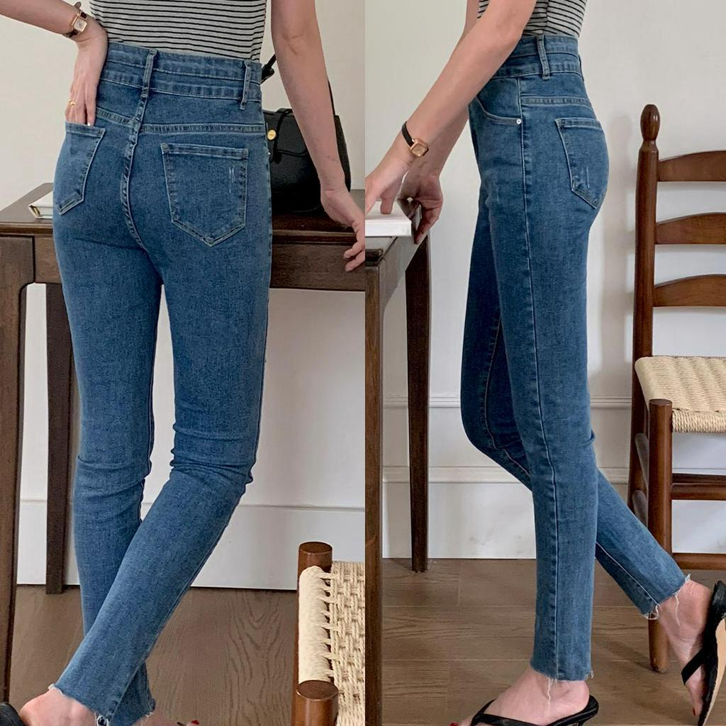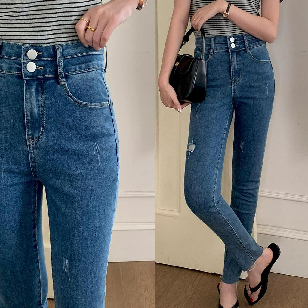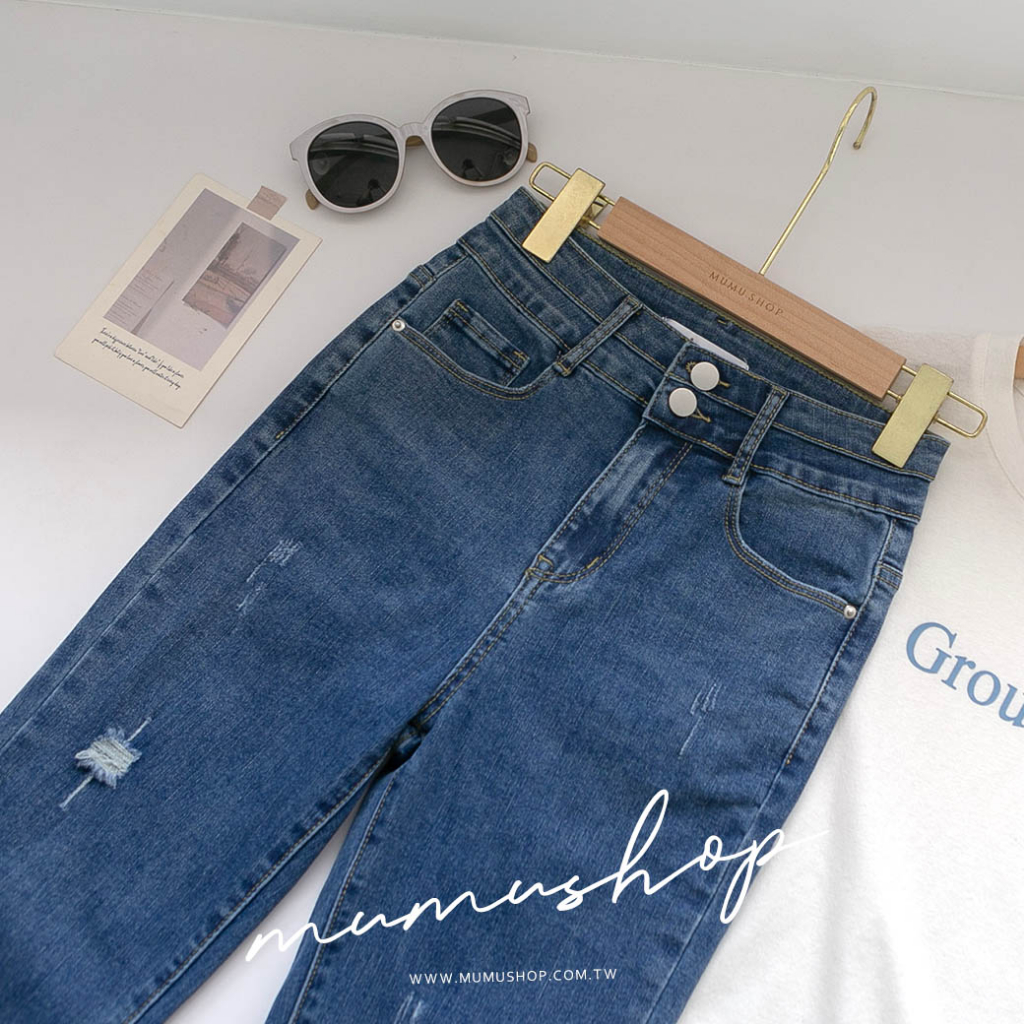 MUMU【P88158】顯瘦微割破抽鬚窄管牛仔褲 藍 收腰褲 女生長褲 寬褲 小隻女 遮肉 顯瘦 現貨 女裝藍,S|藍,M|藍,LMUMUSHOP 韓系女裝批發價 全站實拍