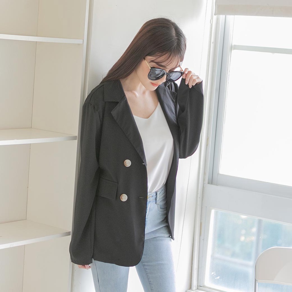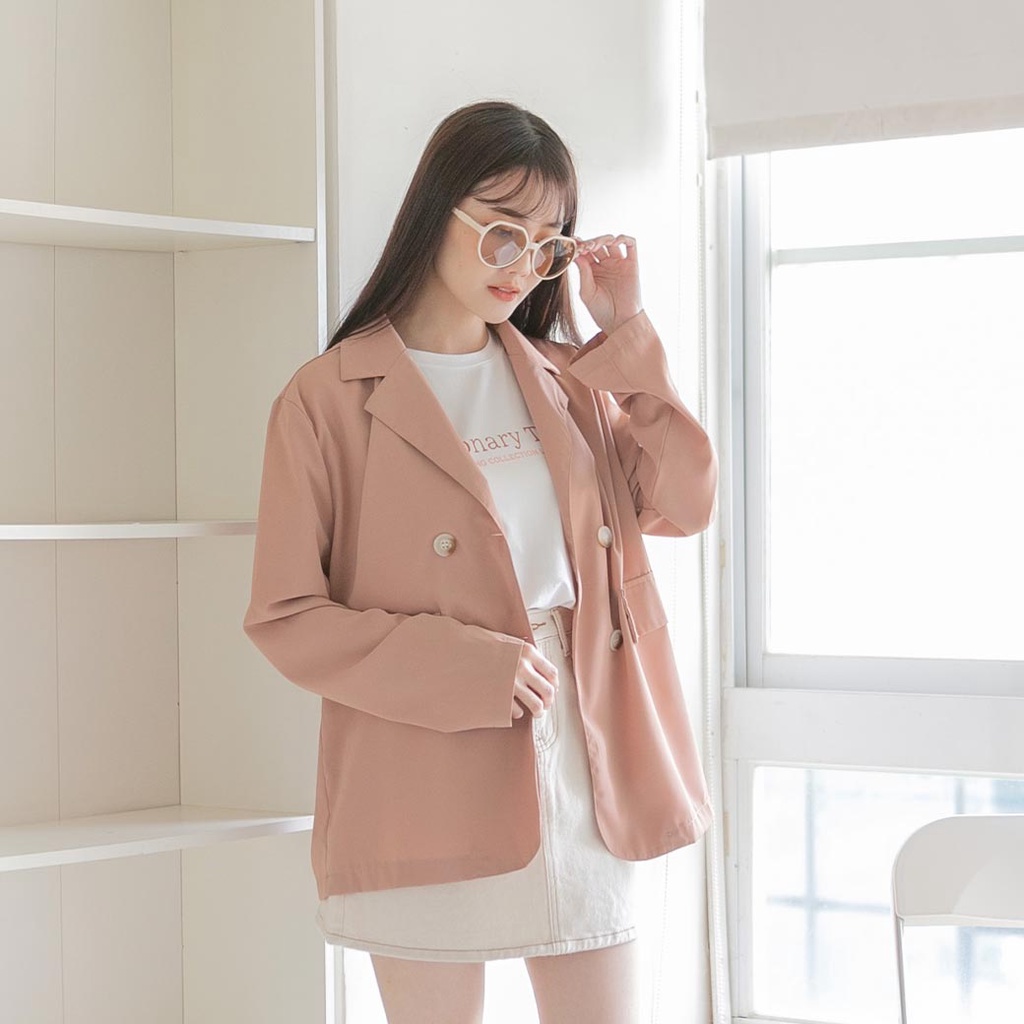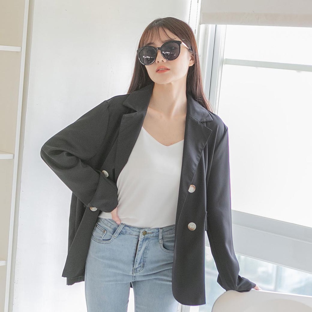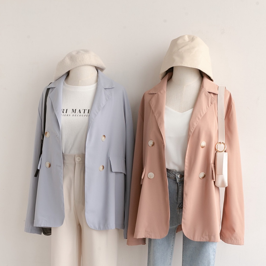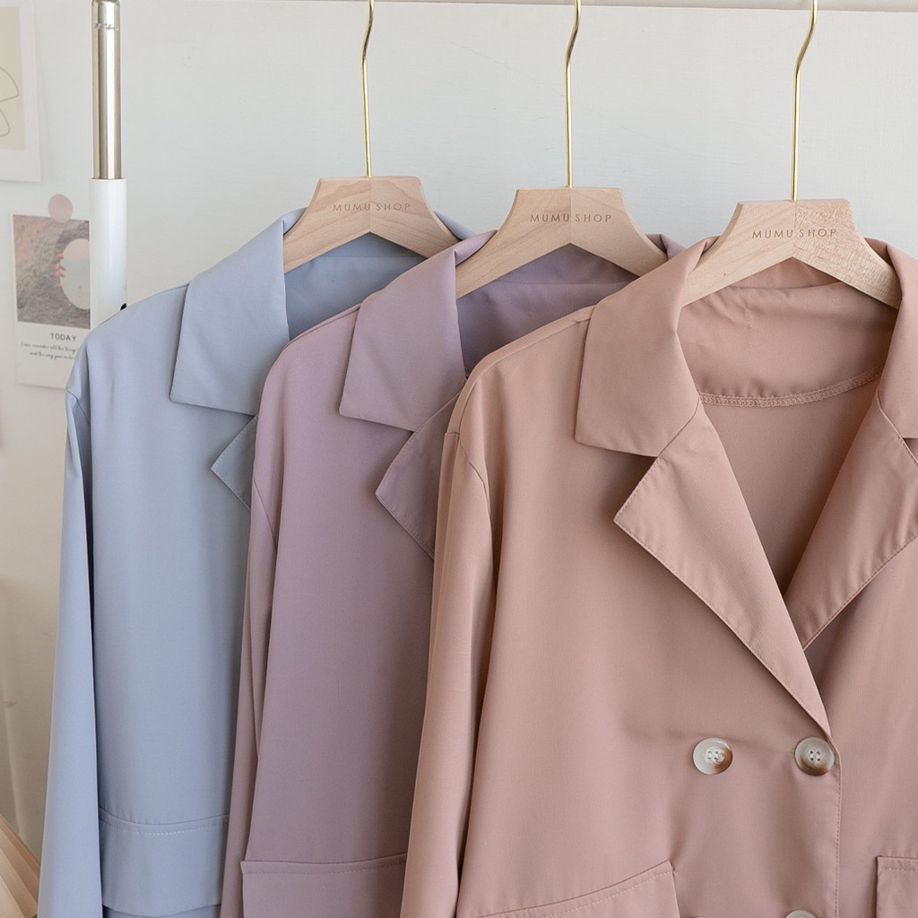MUMU【C79596】西裝外套女 雙排釦西裝外套 素色外套 上班外套 西裝外套大尺碼 休閒西裝外套 女裝灰紫,F|黑,F|霧粉,F|霧藍,FBlazersMUMUSHOP 韓系女裝批發價 全站實拍