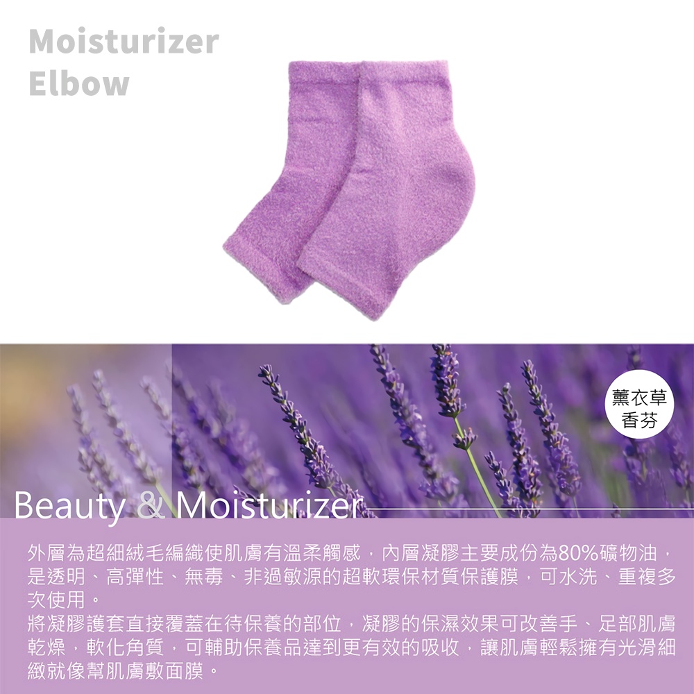 PULO-美肌手肘保濕凝膠套(薰衣草芳香)肘套|響應環保使用OPP袋祼裝包裝|保濕手套 美容手套 居家護理小物薰衣草紫OthersPULO布蘿襪館官方直營旗艦店|穿立淨除臭襪