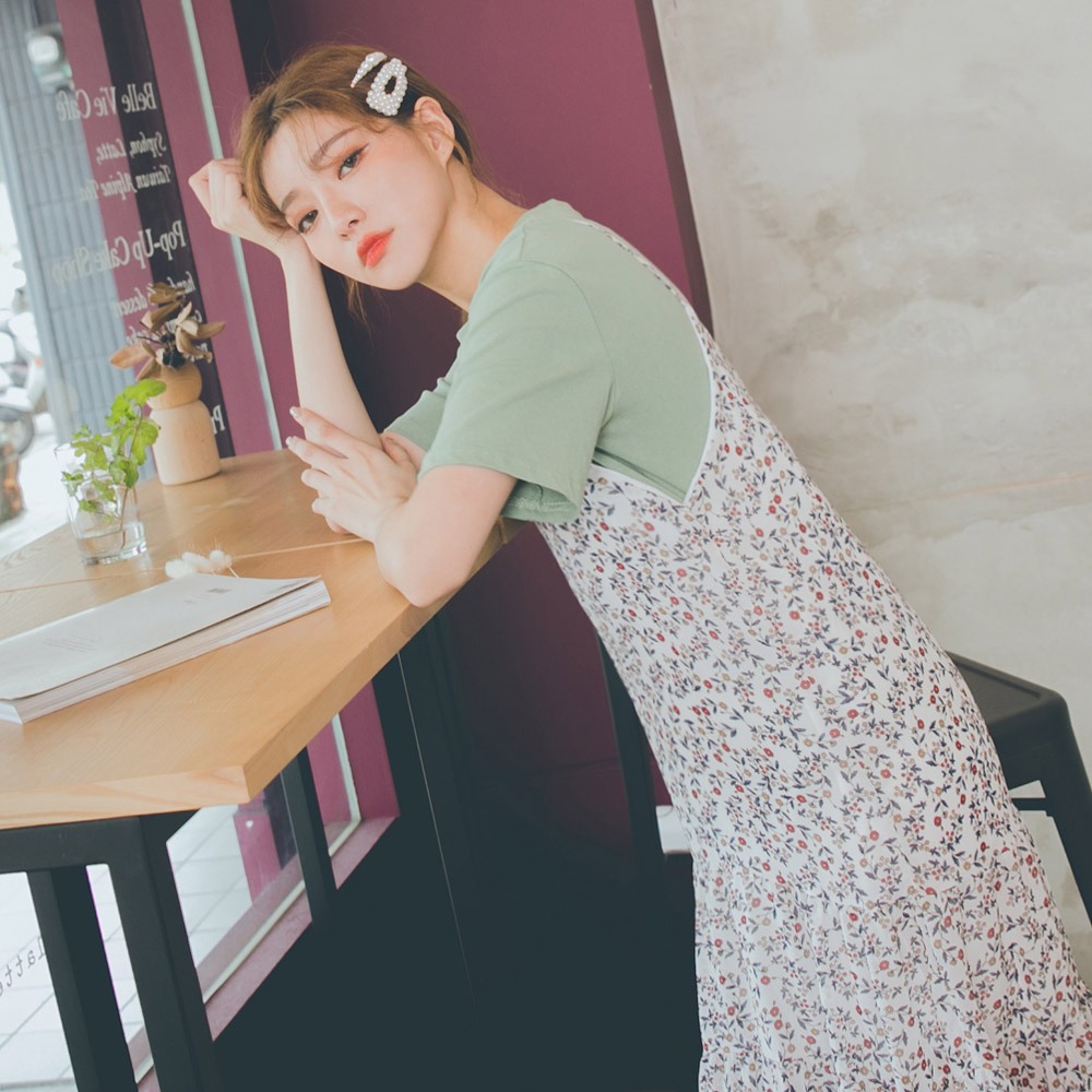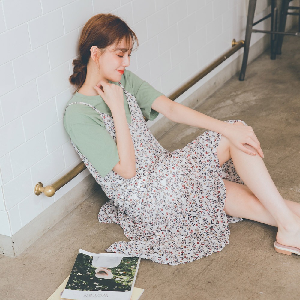 MUMU【O31703】★出清價★ 白色小圓花細肩連身雪紡裙 女裝 雪紡裙 現貨 氣質 甜美風 碎花白,FMUMUSHOP 韓系女裝批發價 全站實拍
