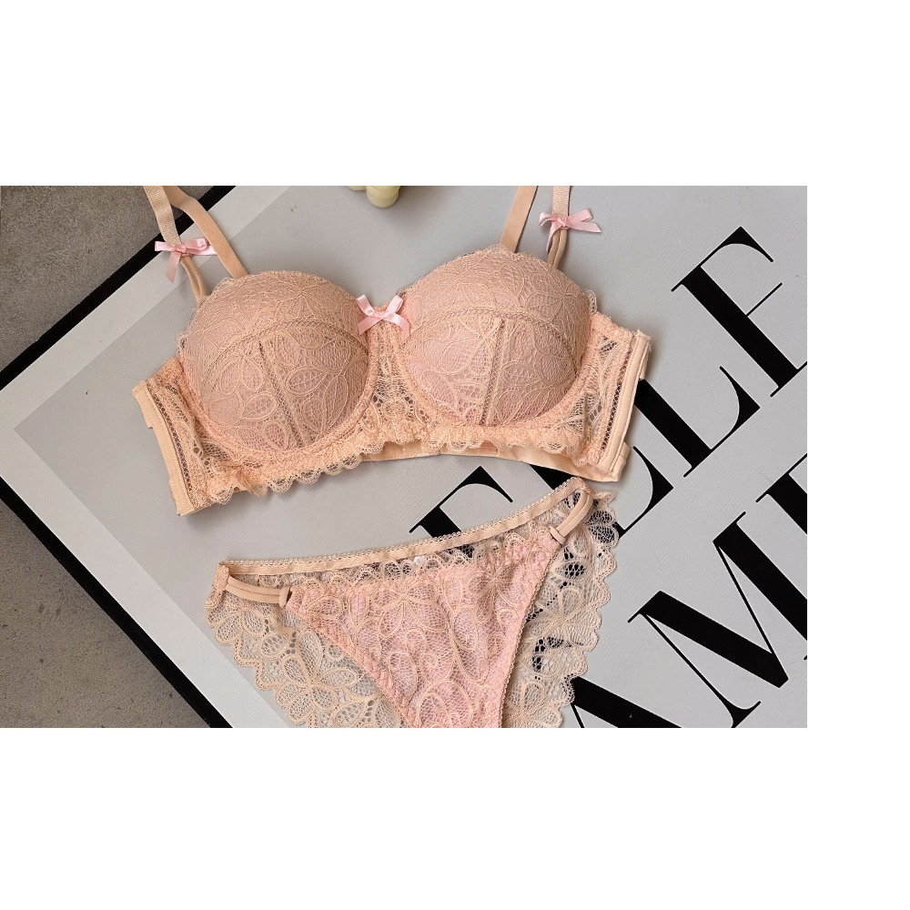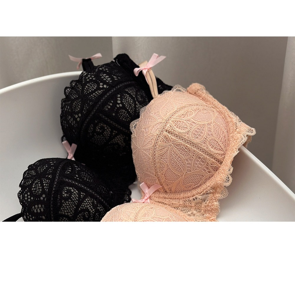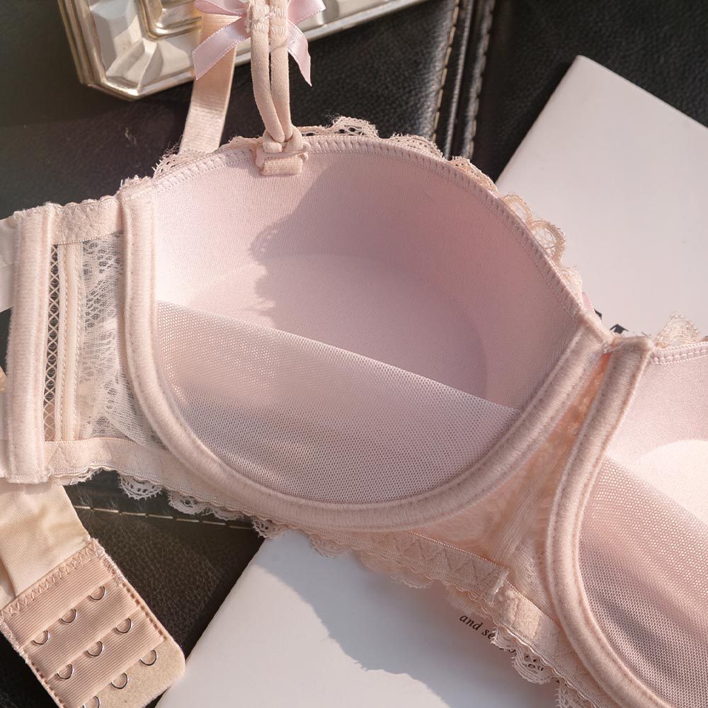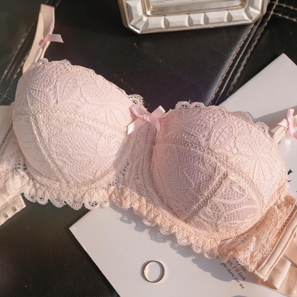 【B02115-1】戀愛魔鏡。半罩蕾絲蝴蝶結軟鋼圈內衣(無配褲)。粉 36B 集中內衣 性感內衣 日系內衣粉,36BBrasMUMUSHOP 韓系女裝批發價 全站實拍