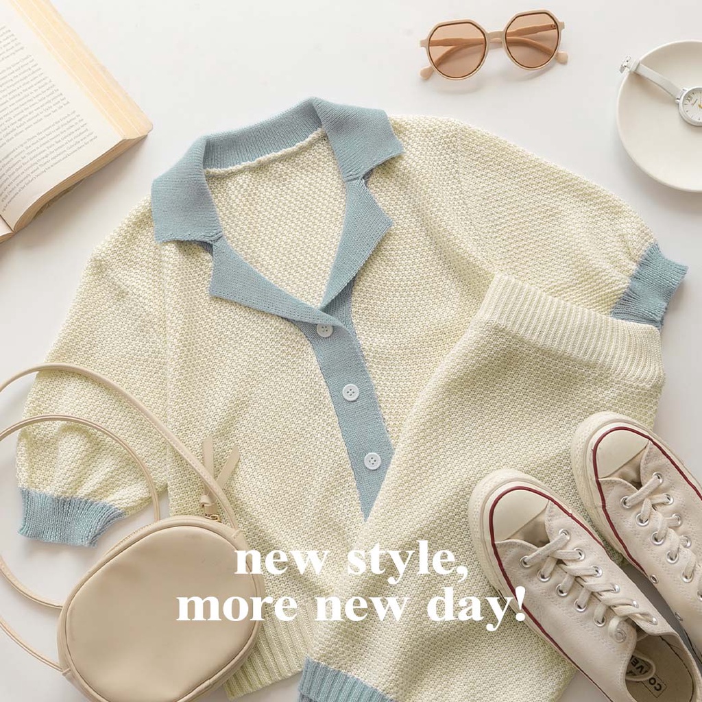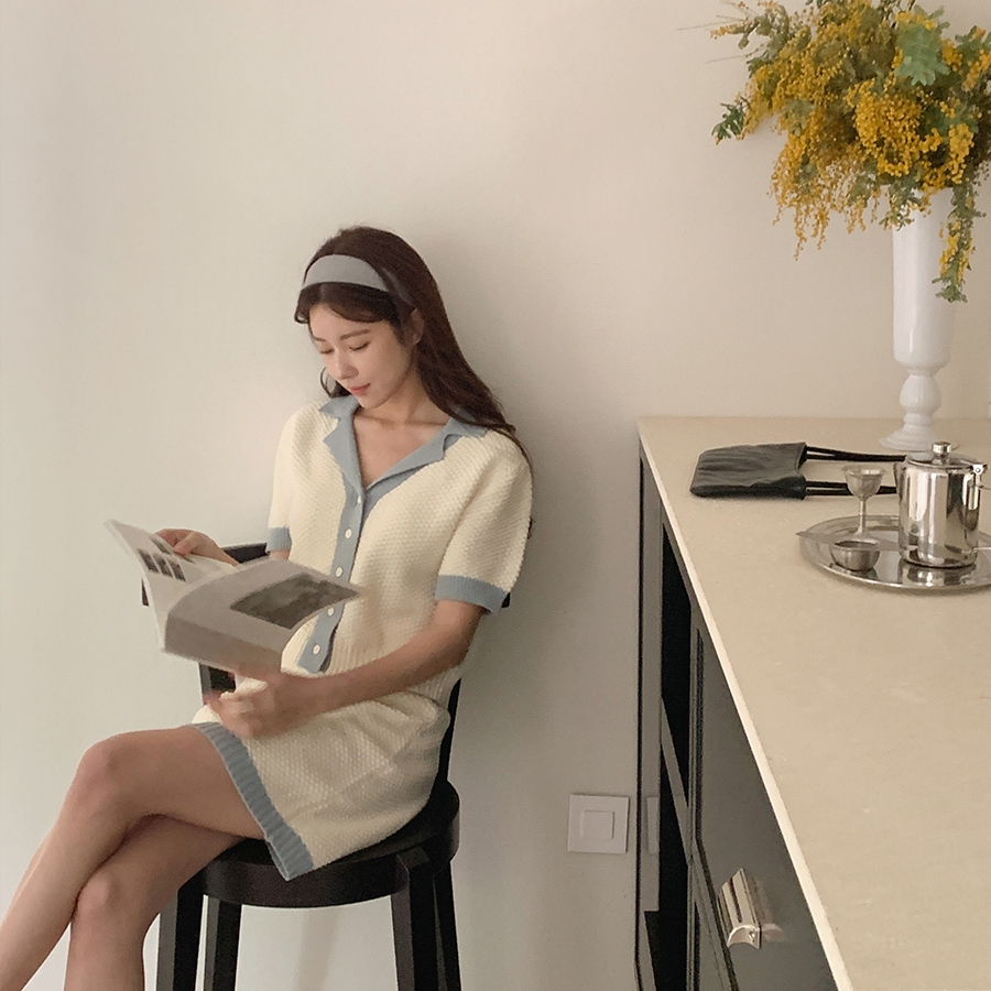 MUMU【T03105】 韓國同款 【藍】小香風 新款 套裝 短裙 收腰 顯瘦 洋裝 質感配色 針織套裝 藍色藍,FIndividual SetsMUMUSHOP 韓系女裝批發價 全站實拍