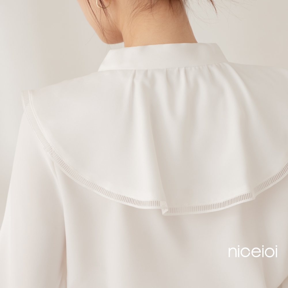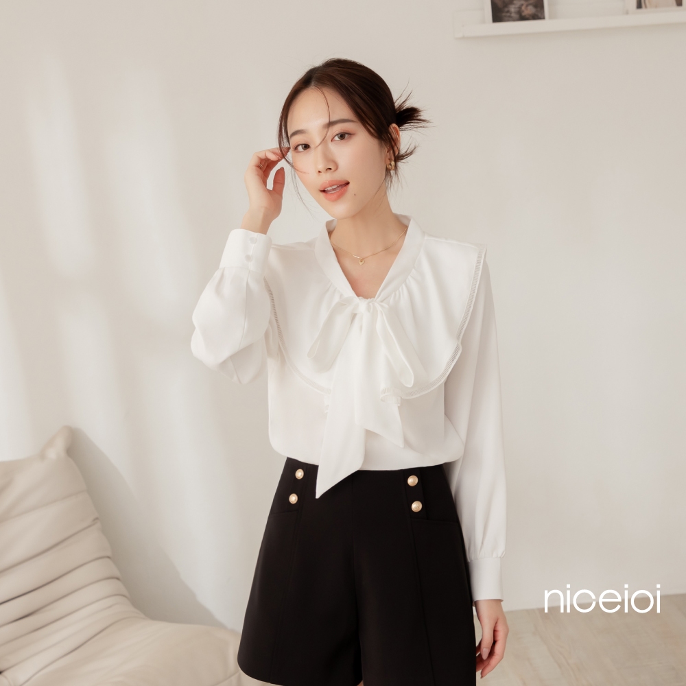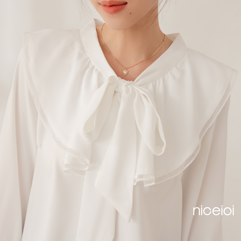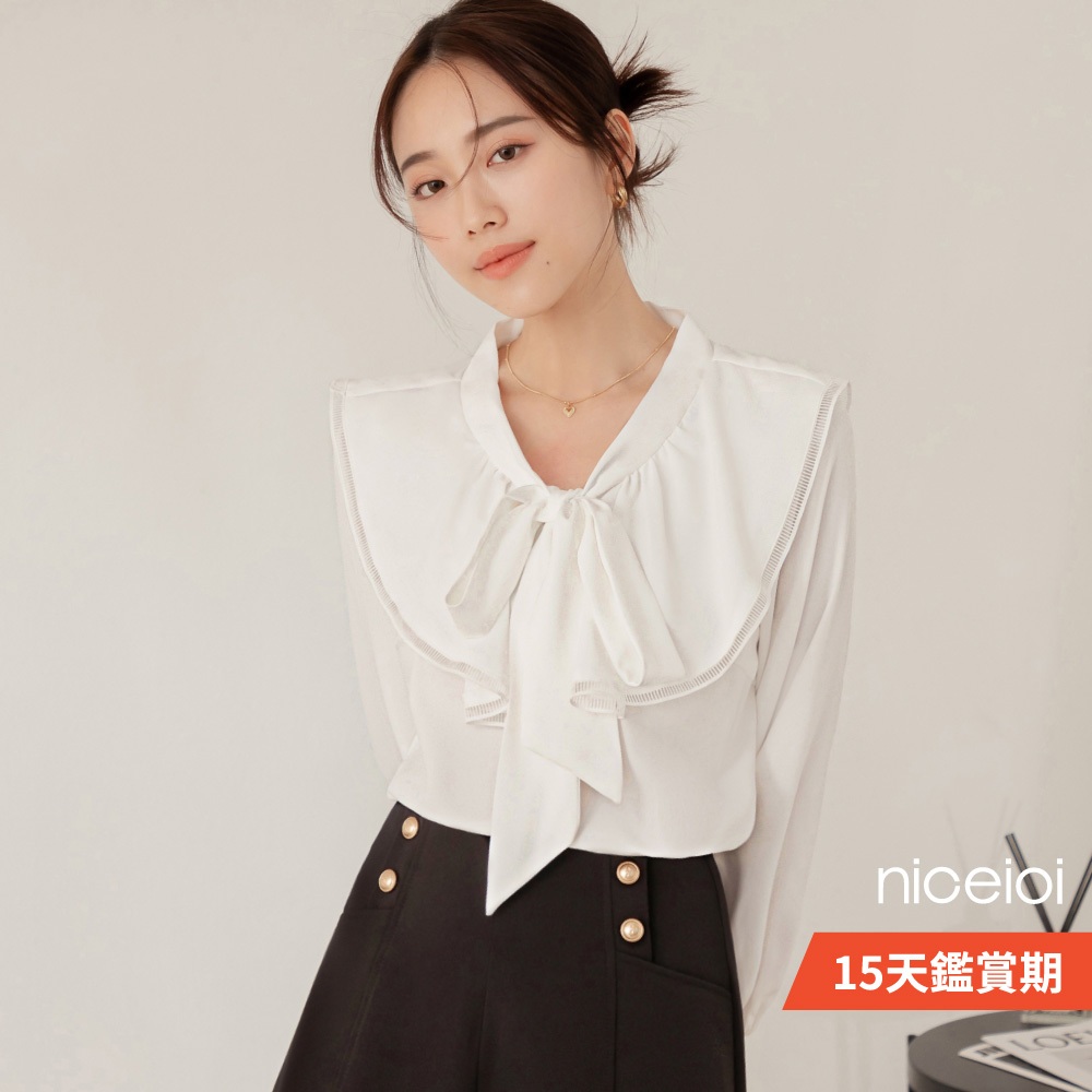 niceioi【特惠】白富美鏤空領邊綁帶上衣 女裝