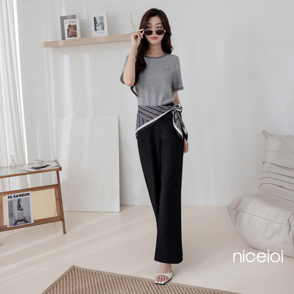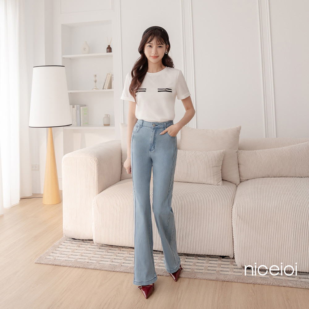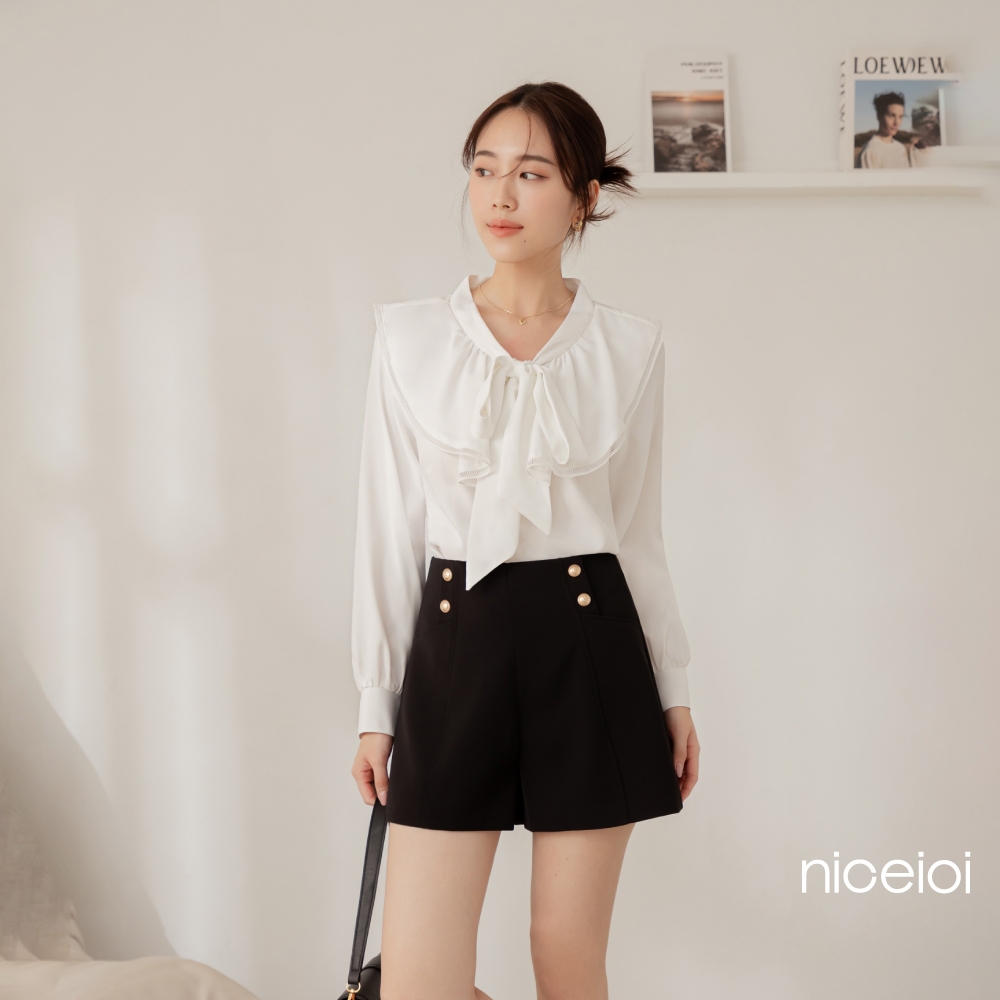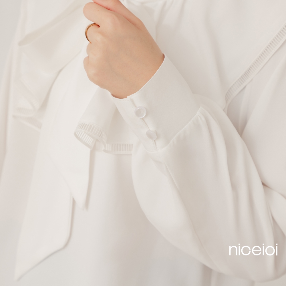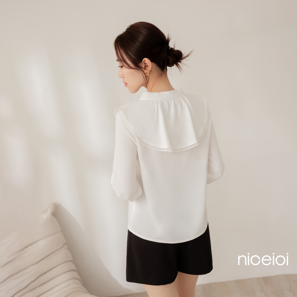 niceioi【特惠】白富美鏤空領邊綁帶上衣 女裝