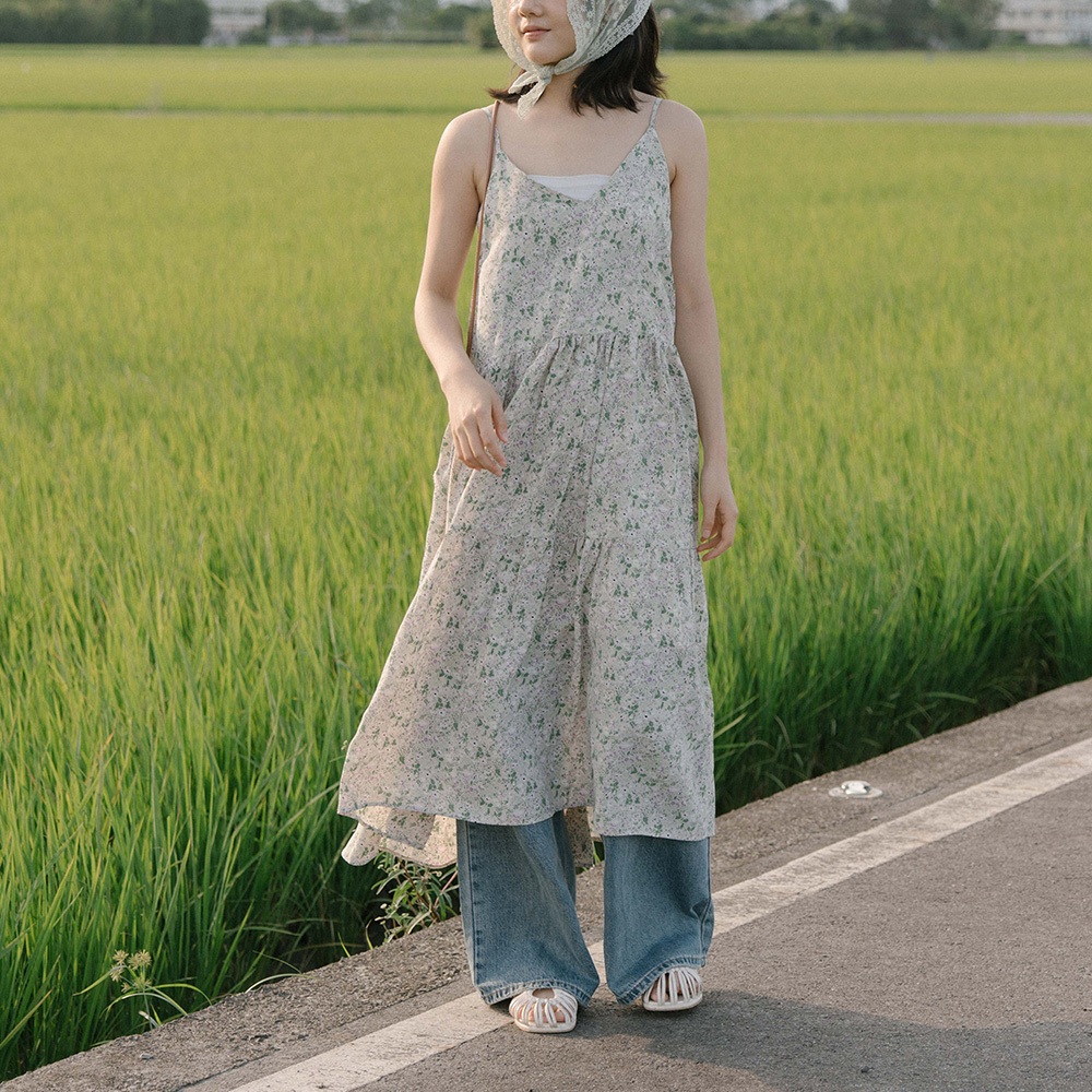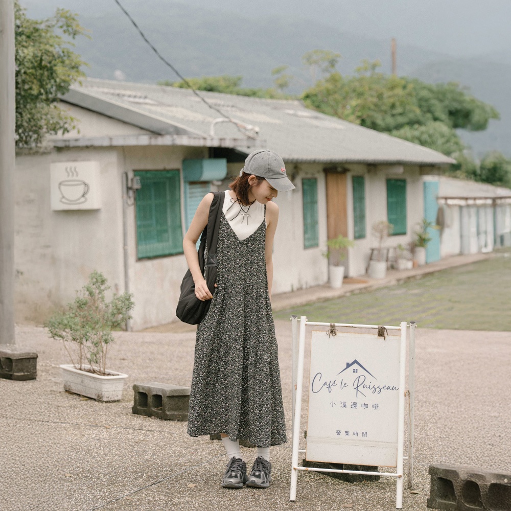 QUEENSHOP_ S 女裝 前後V領滿版碎花長洋裝 兩色售 現+預 【01087072】黑|綠QUEENSHOP