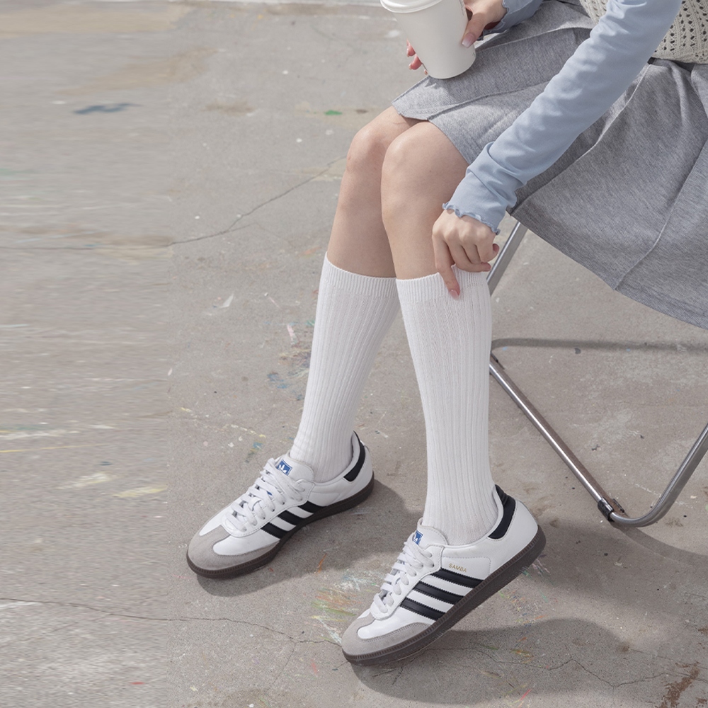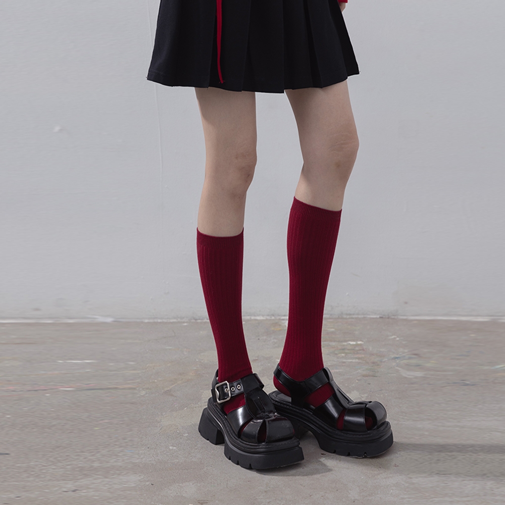 QUEENSHOP_ F 女裝 素面基本色面坑條長襪 五色售 現+預 【07110567】黑|白|紅|深灰|淺灰SocksQUEENSHOP