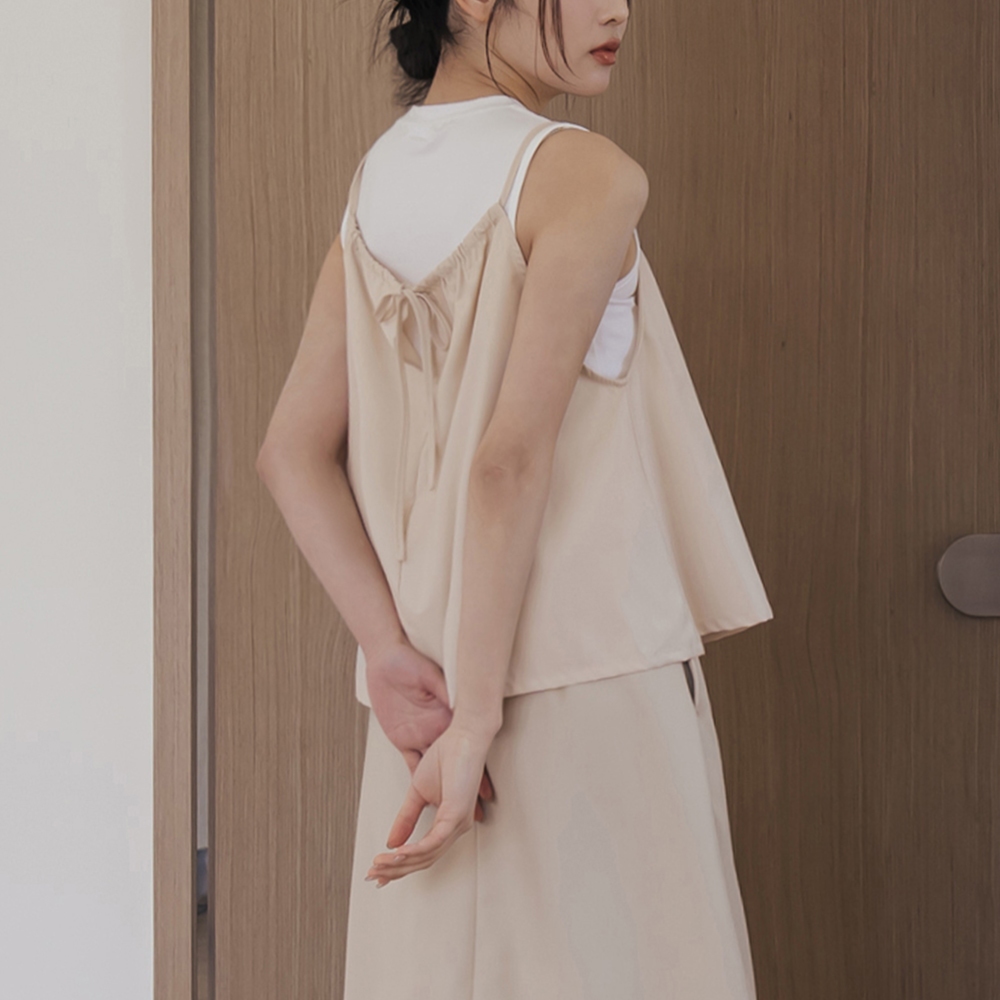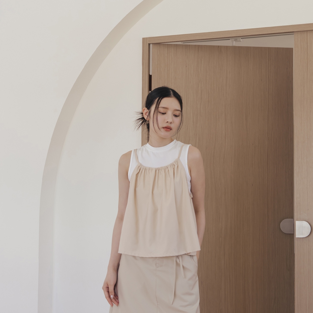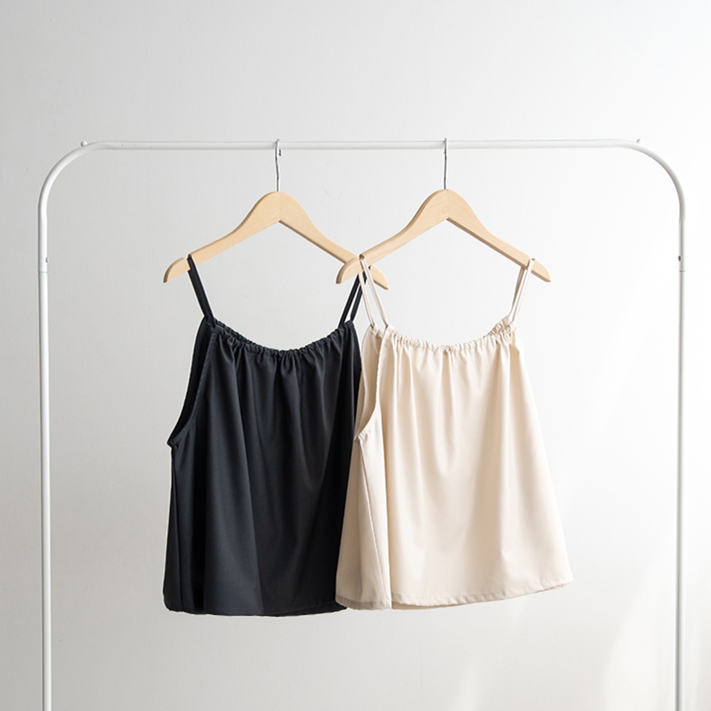 QUEENSHOP_ S 女裝 簡約綁帶抽皺細肩削肩背心-杏 現+預 【01150465】杏Tanks & CamisolesQUEENSHOP
