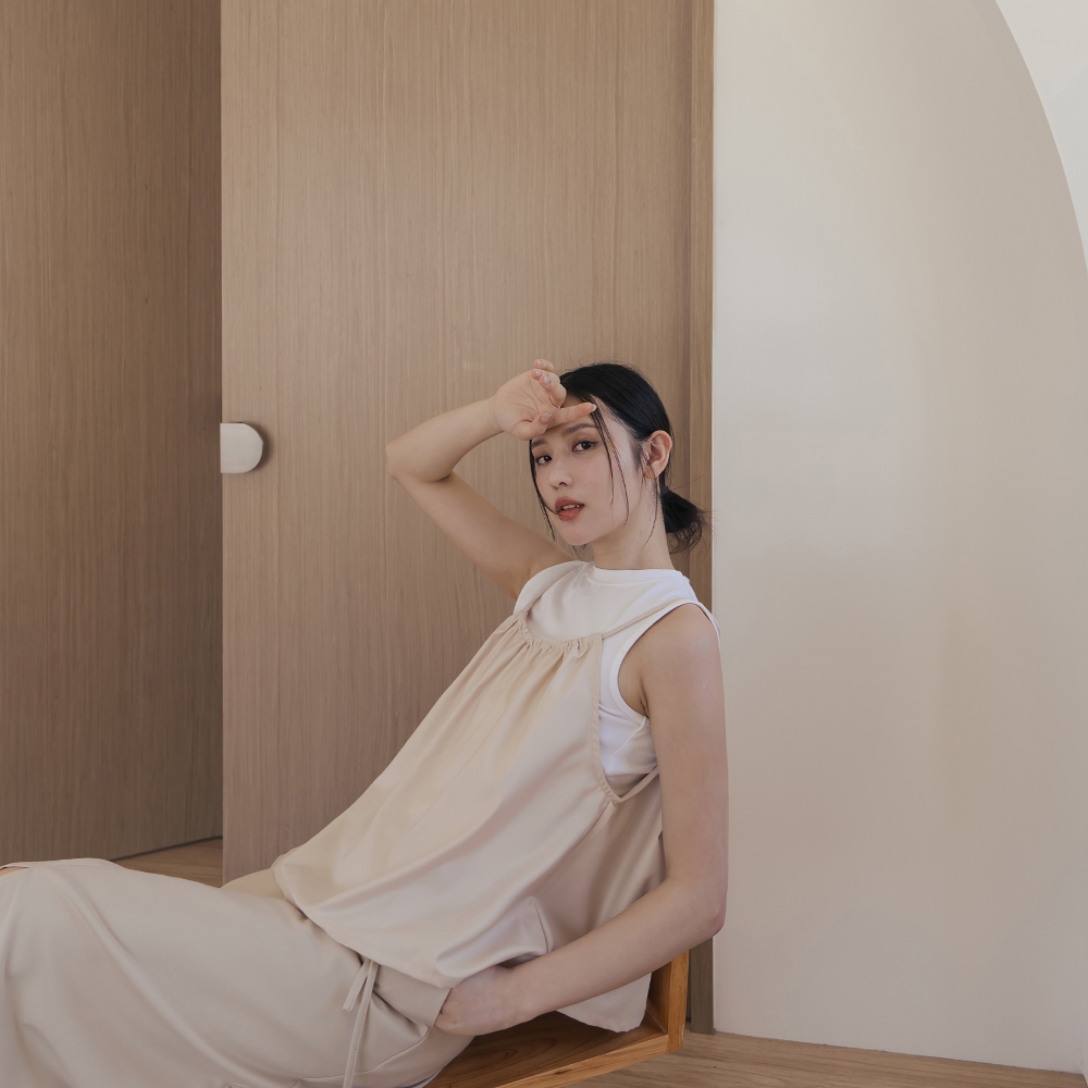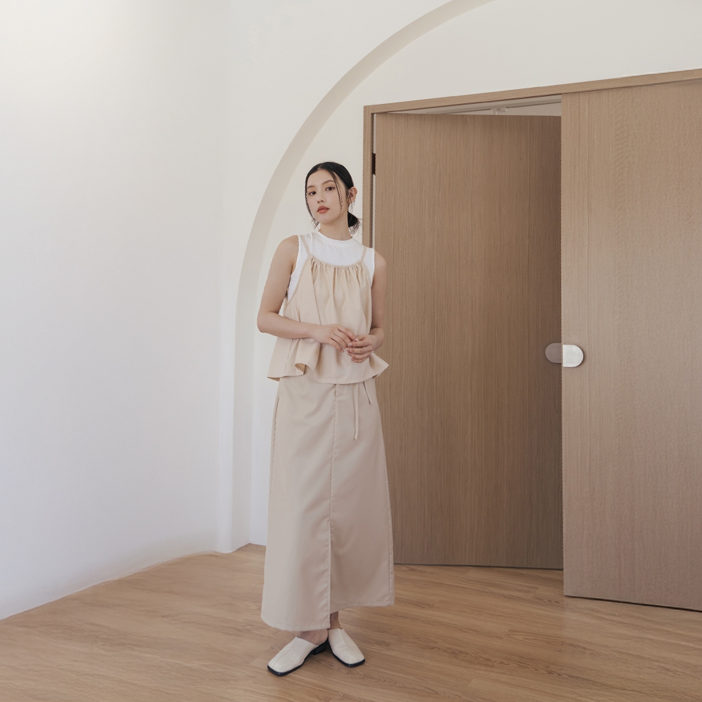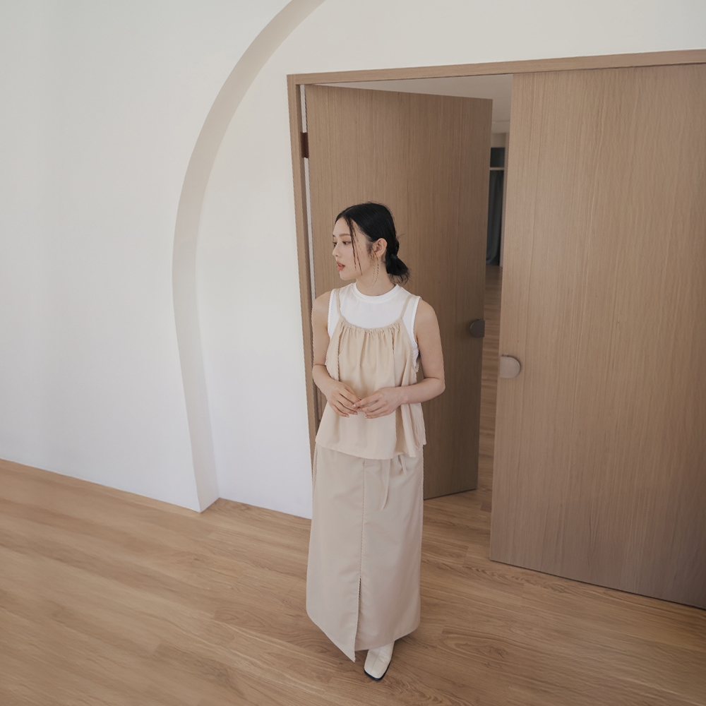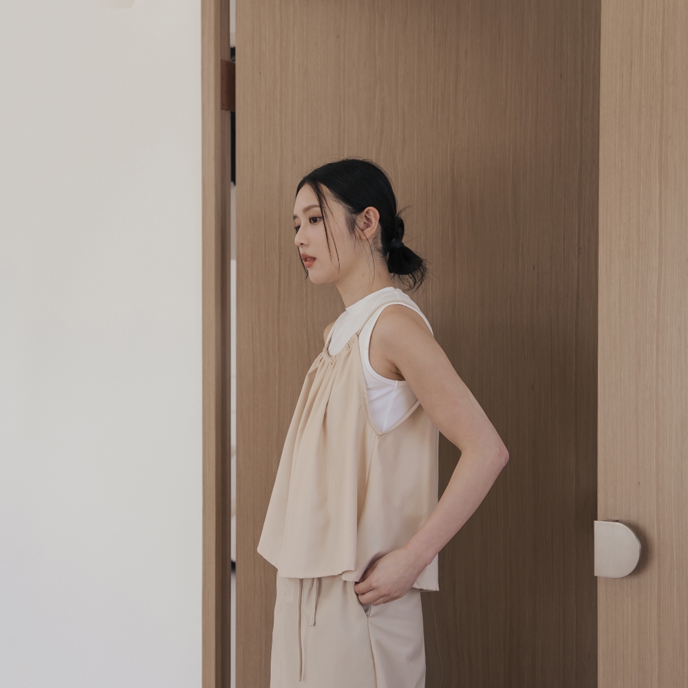 QUEENSHOP_ S 女裝 簡約綁帶抽皺細肩削肩背心-杏 現+預 【01150465】杏Tanks & CamisolesQUEENSHOP