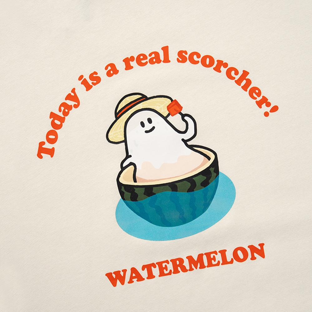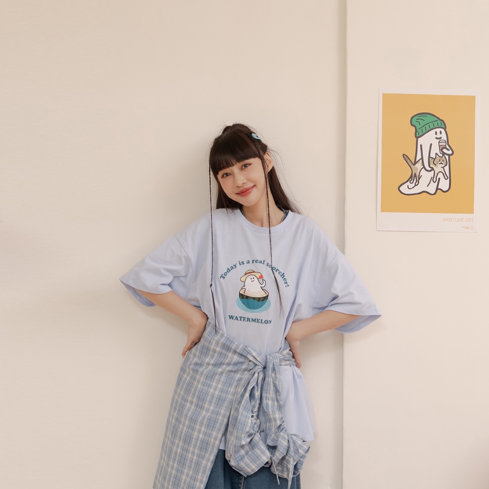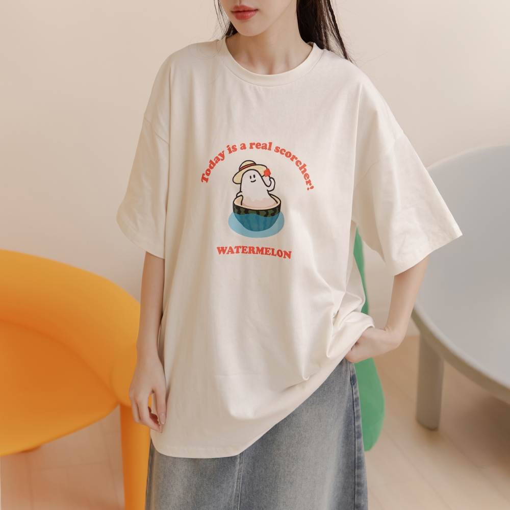 QUEENSHOP_ S 女裝 短袖 P/D幽靈 夏日吃西瓜印圖短袖上衣 兩色售 現+預 【01190257】藍|杏T-shirtsQUEENSHOP