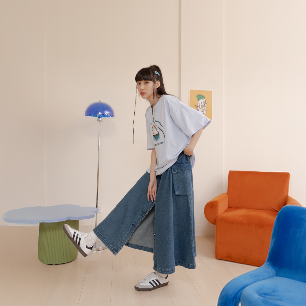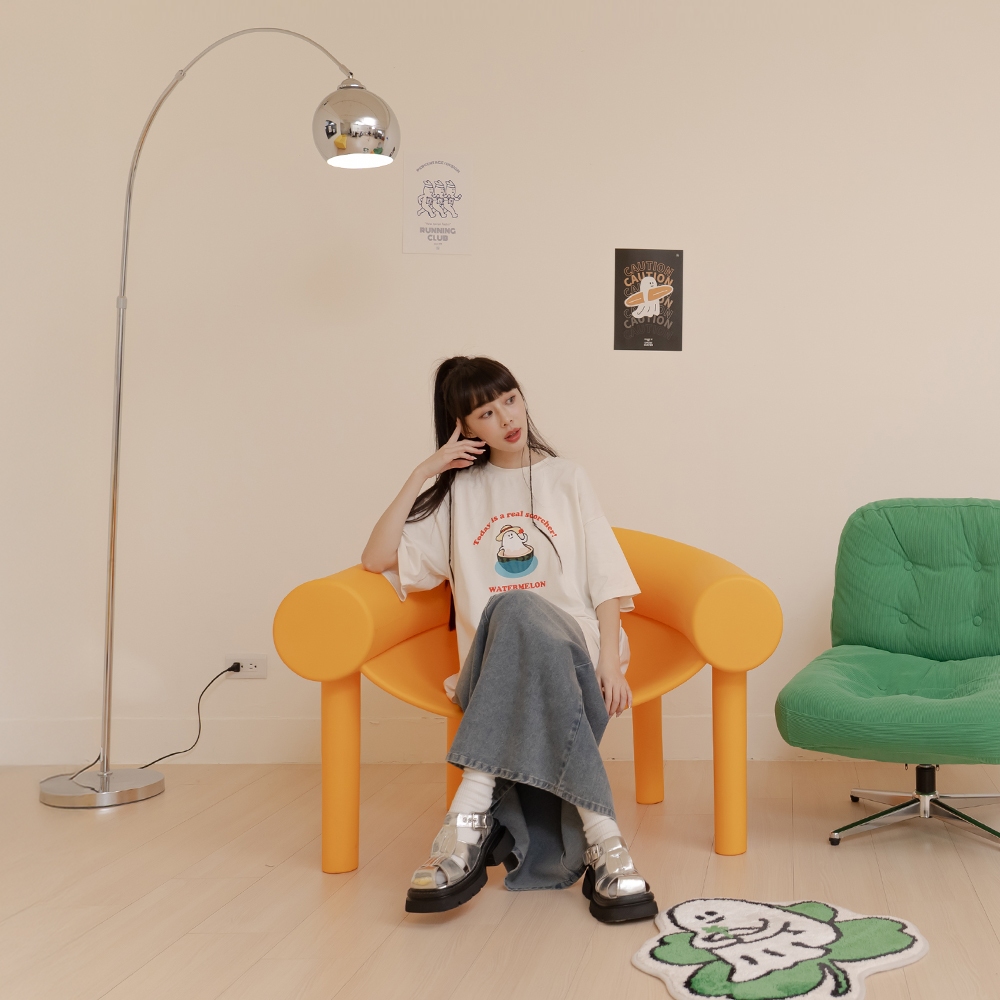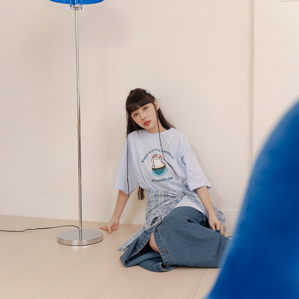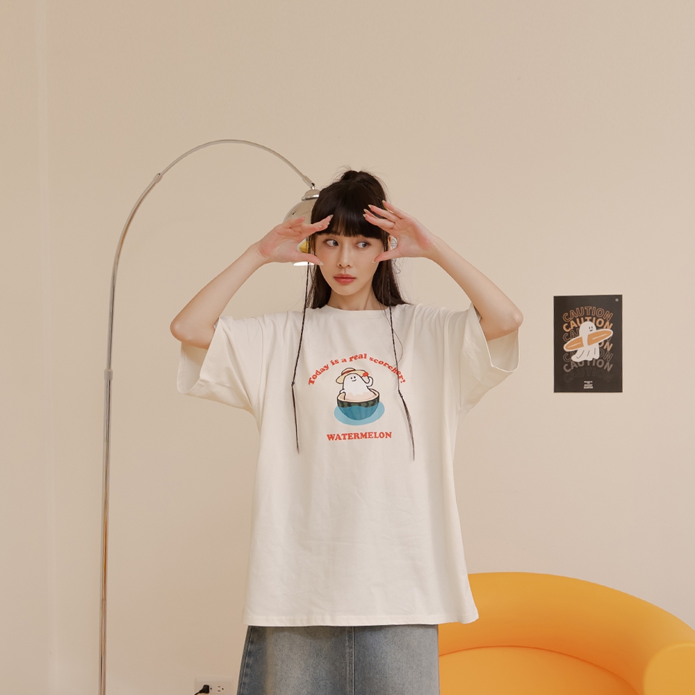 QUEENSHOP_ S 女裝 短袖 P/D幽靈 夏日吃西瓜印圖短袖上衣 兩色售 現+預 【01190257】藍|杏T-shirtsQUEENSHOP
