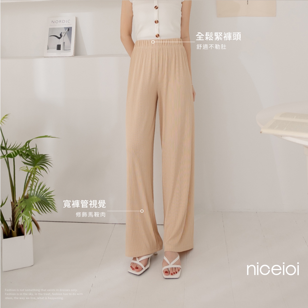 niceioi【特惠】涼感褲 寬褲 坑條寬褲 寬褲女 黑色 [顯瘦藏肉坑條寬褲] S-XXL 超值推薦 大尺碼女裝