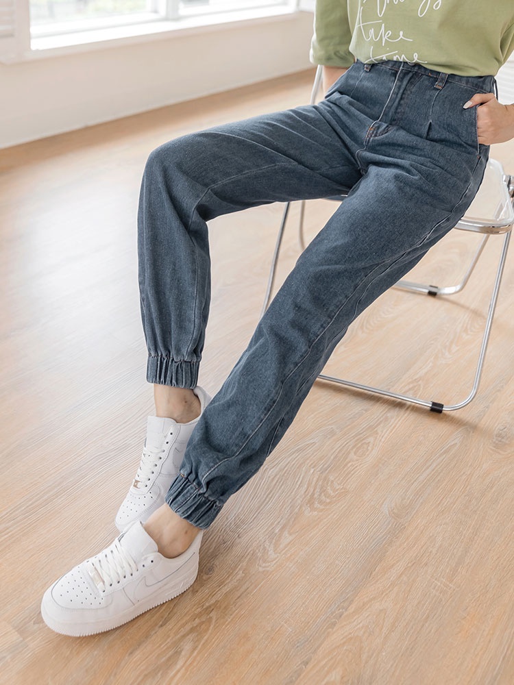OB嚴選 棉質後鬆緊口袋牛仔束口褲 《BA7298》大尺碼/現貨/女裝深藍,S|深藍,M|深藍,L|深藍,XL|深藍,2L|深藍,3L|深藍,4LPantsOB嚴選官方旗艦店