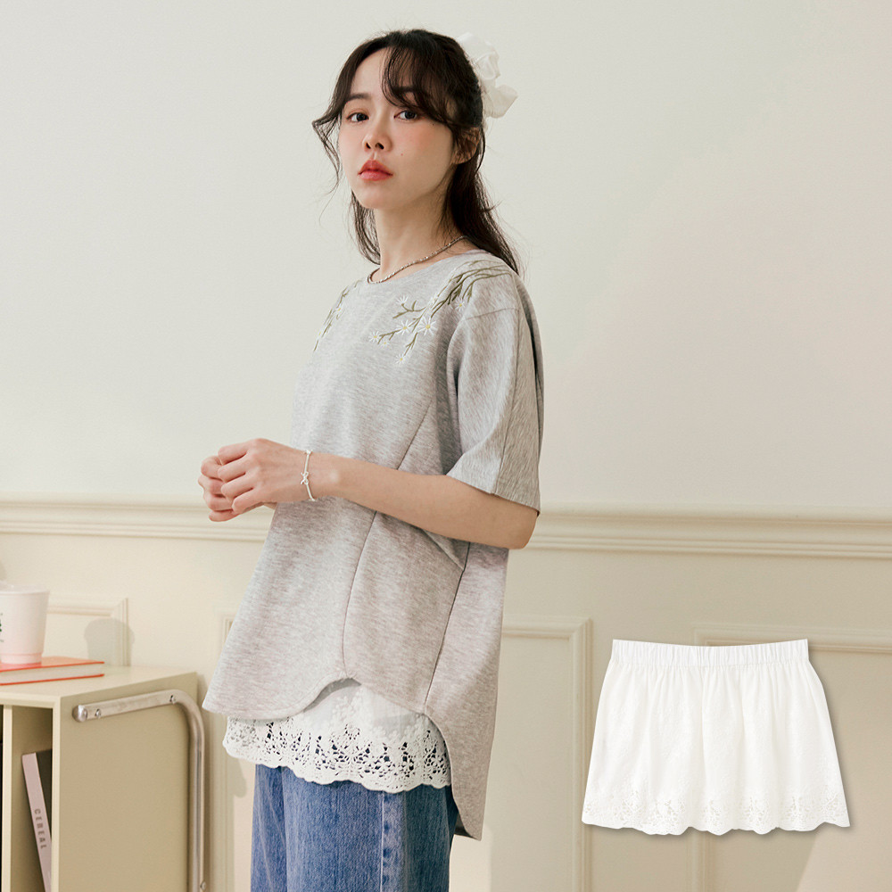OB嚴選 純棉腰鬆緊蕾絲裙簾 《CA3135》白,F|白,XL|白,2L|白,3LOB嚴選官方旗艦店