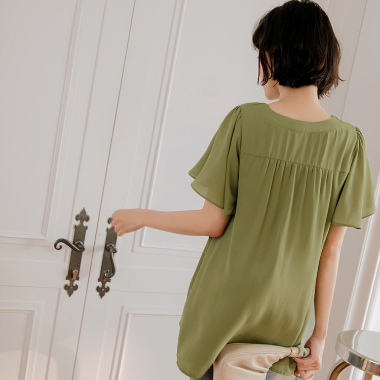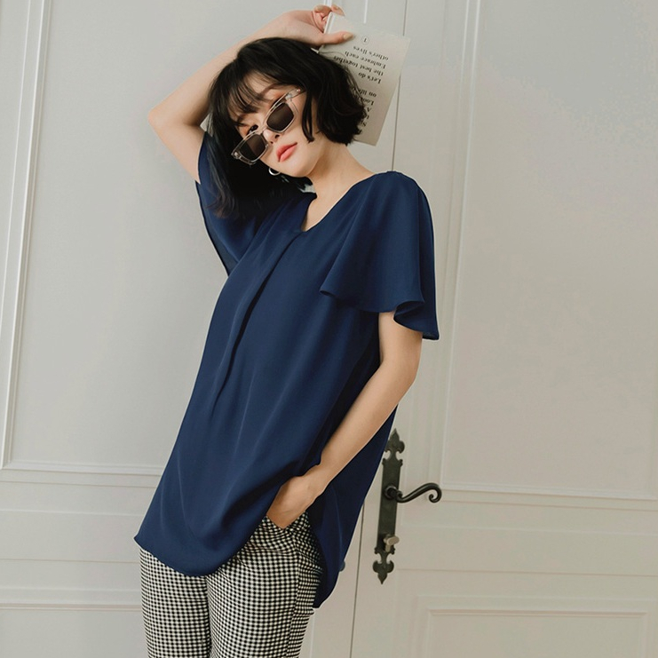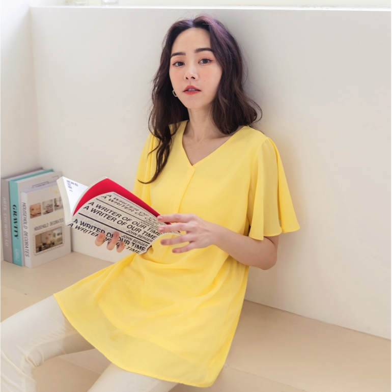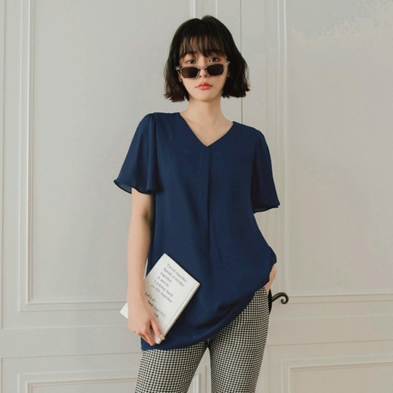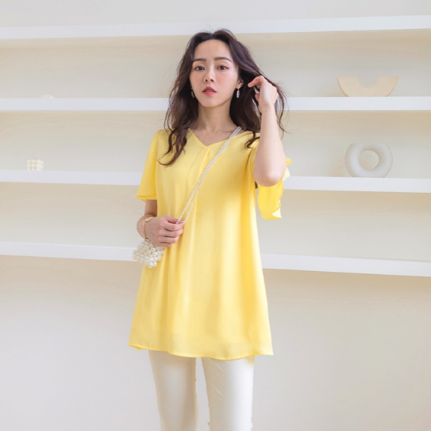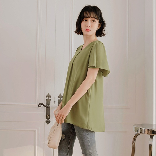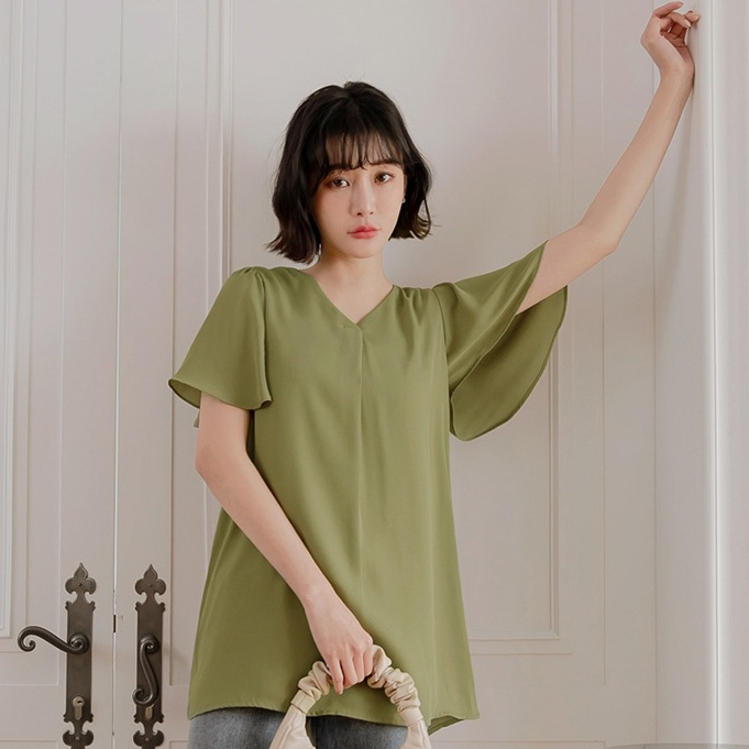 OB嚴選 小V臉.V領壓褶荷葉袖長版上衣 《AB17119》大尺碼/女裝/現貨深藍,M|鵝黃,S|鵝黃,3L|灰綠,XL|灰綠,3L|深藍,S|深藍,L|深藍,XL|灰綠,M|深藍,3L|灰綠,L|灰綠,2L|深藍,2L|鵝黃,M|鵝黃,L|鵝黃,XL|鵝黃,2L|灰綠,ST-shirtsOB嚴選官方旗艦店