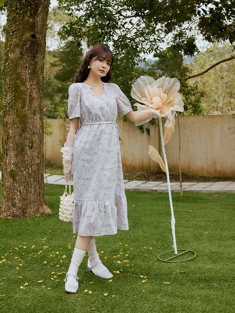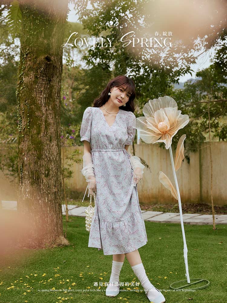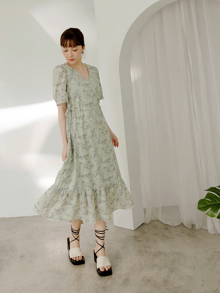 OB嚴選 V領側綁帶碎花洋裝 《DA10339》灰藍,S|灰藍,M|灰藍,L|灰藍,XL|灰藍,2L|灰藍,3L|薄荷綠,S|薄荷綠,M|薄荷綠,L|薄荷綠,XL|薄荷綠,2L|薄荷綠,3LOB嚴選官方旗艦店