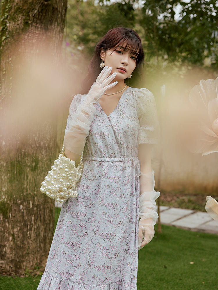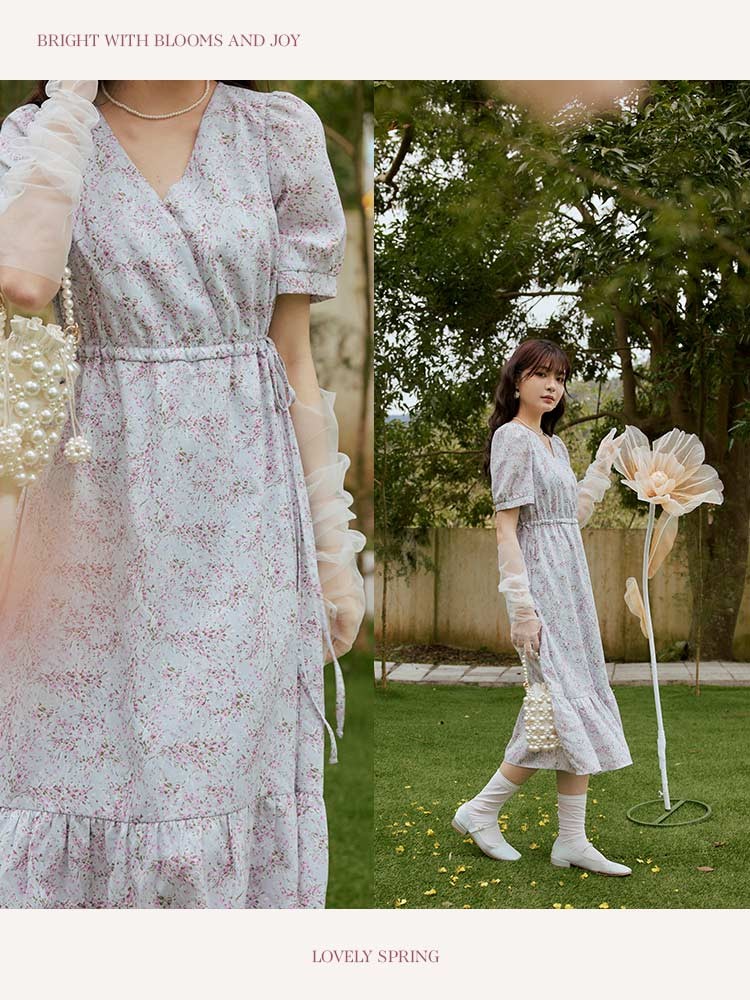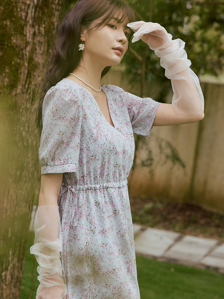 OB嚴選 V領側綁帶碎花洋裝 《DA10339》