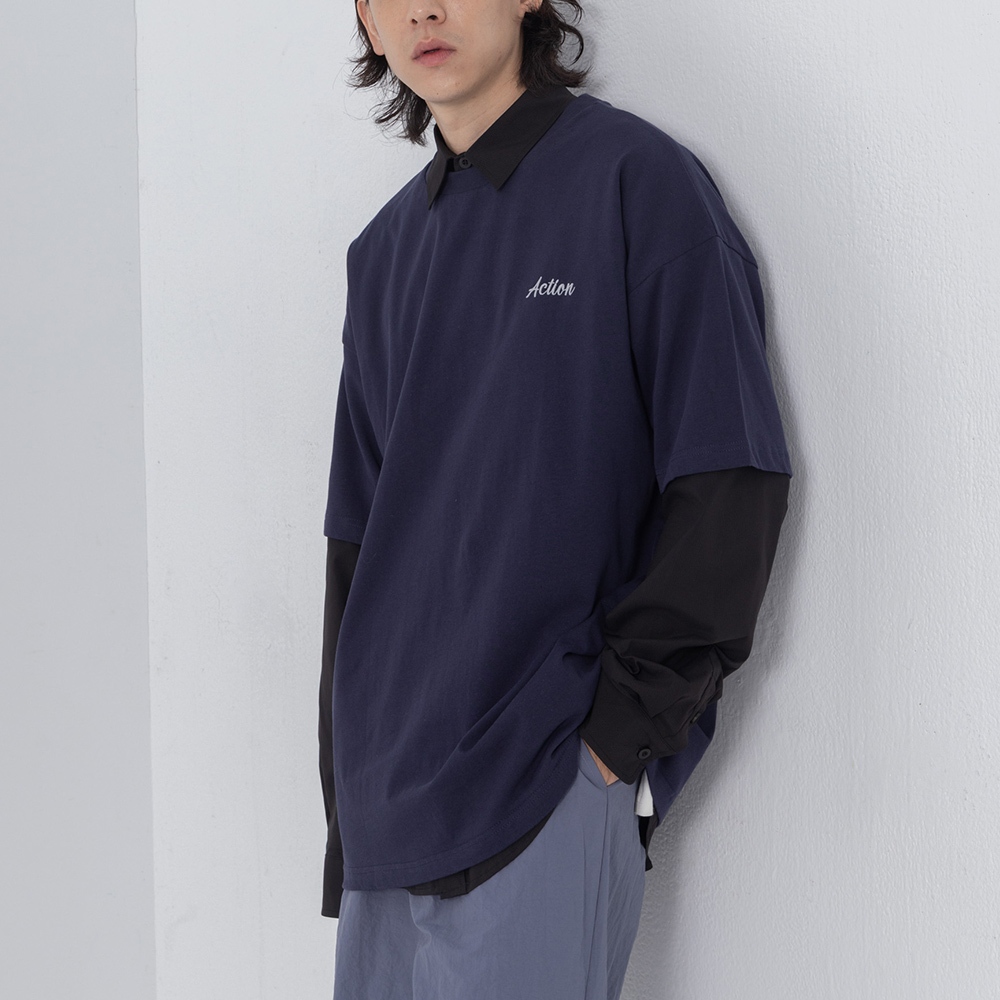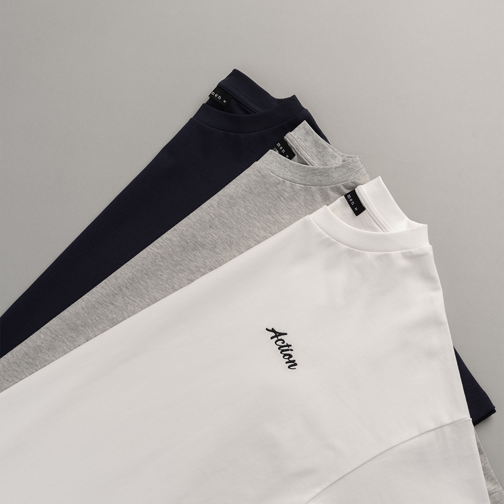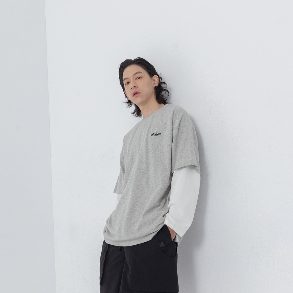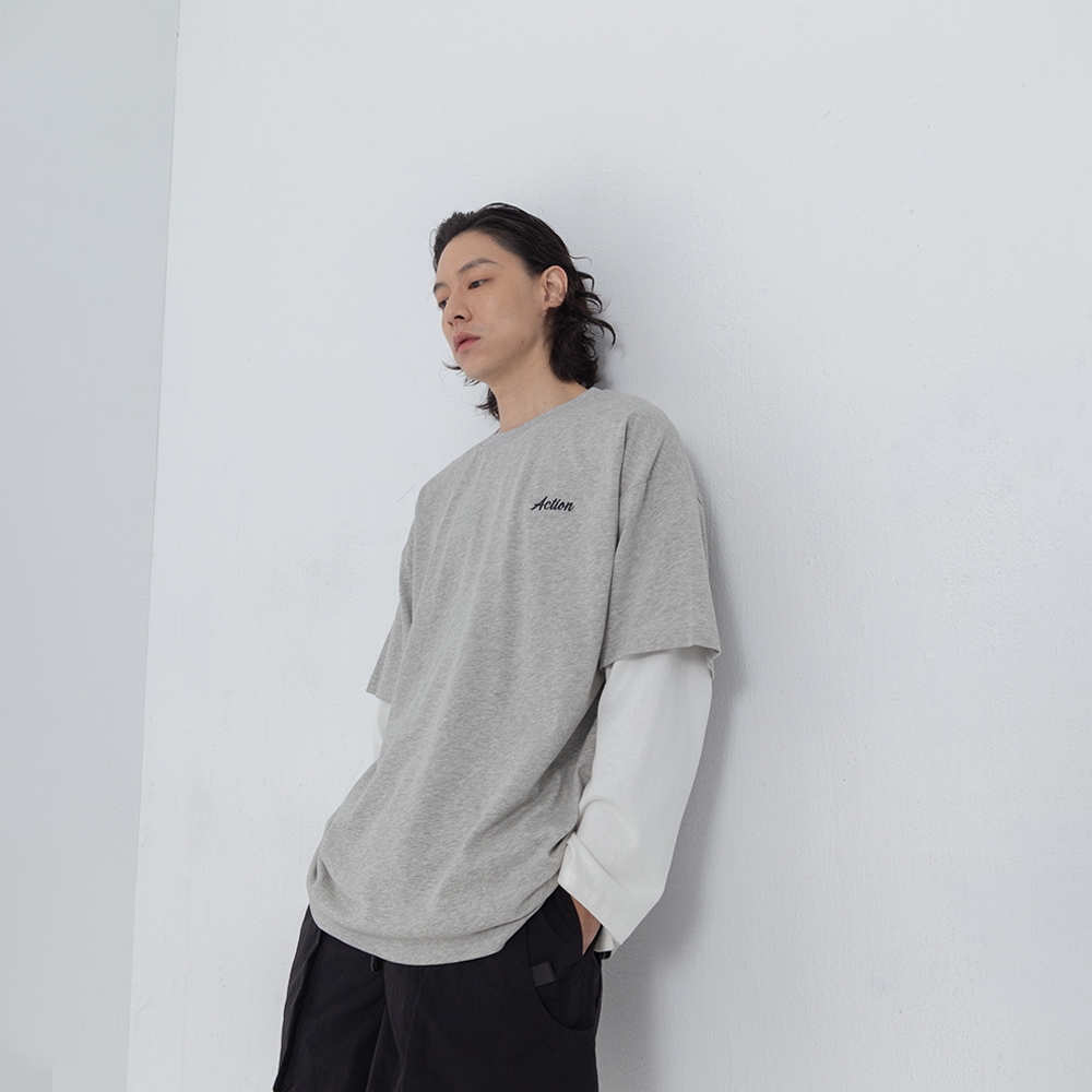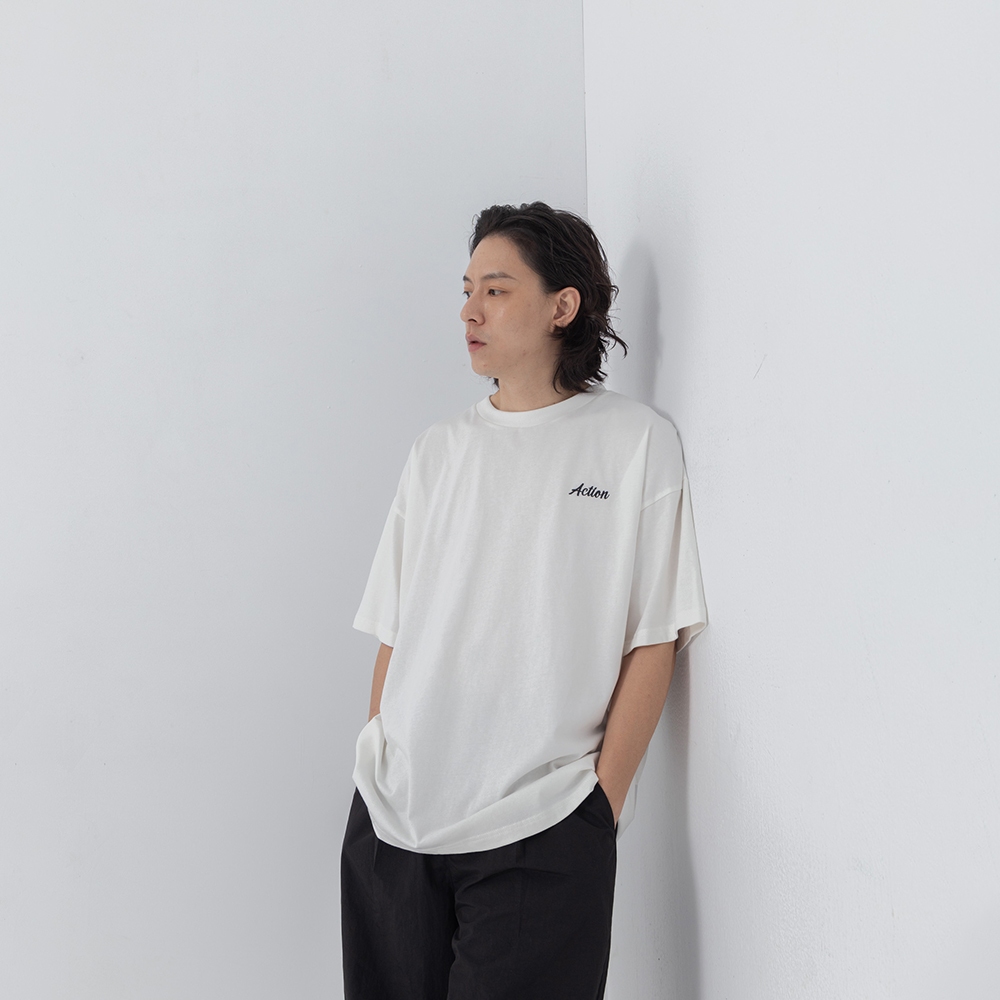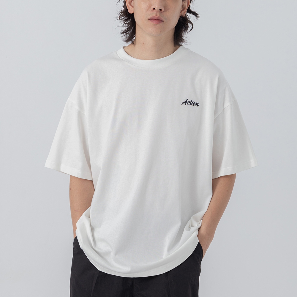 QUEENSHOP_ S 男裝 短袖 ACTION繡字造型寬版上衣 三色售 S/M/L/XL 現+預 【01039892藍S|藍M|藍L|藍XL|米白S|米白M|米白L|米白XL|花灰S|花灰M|花灰L|花灰XLT-shirtsQUEENSHOP
