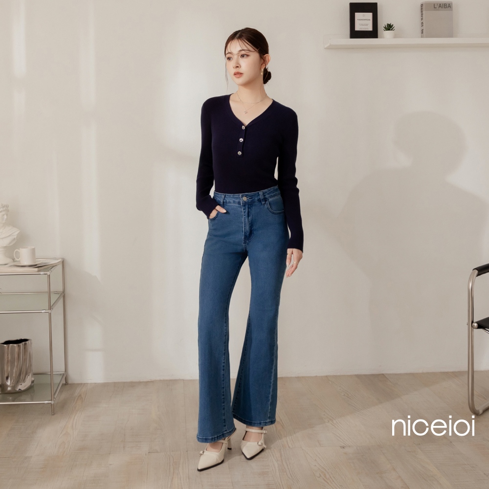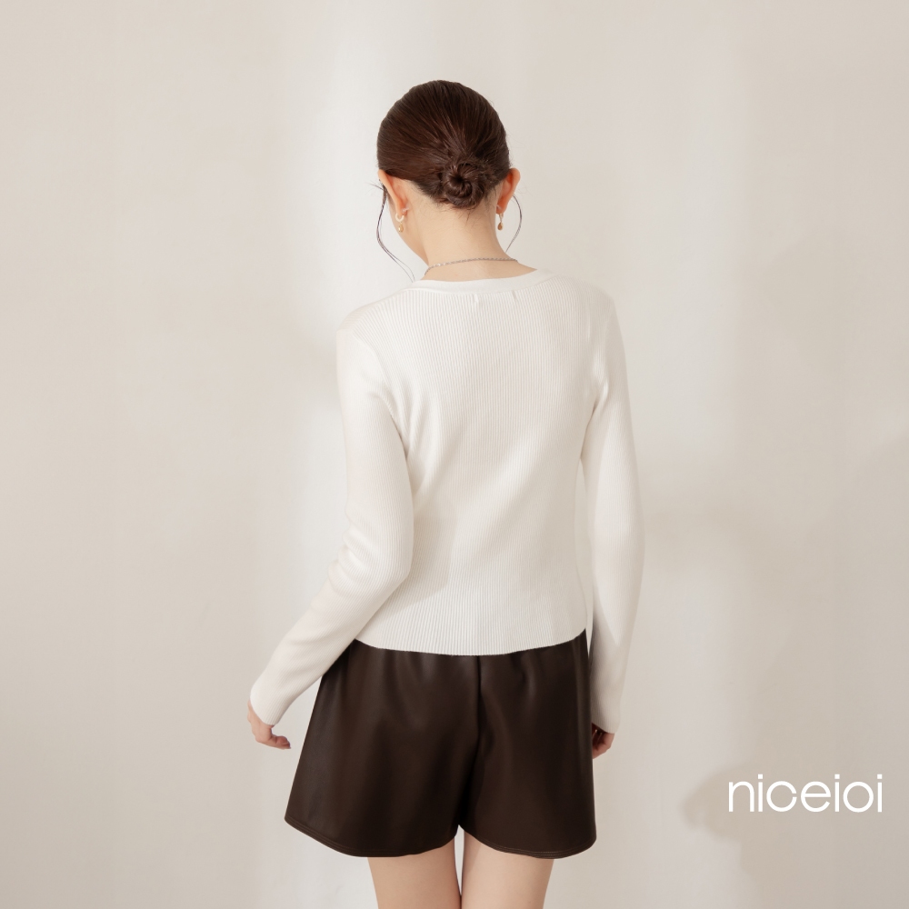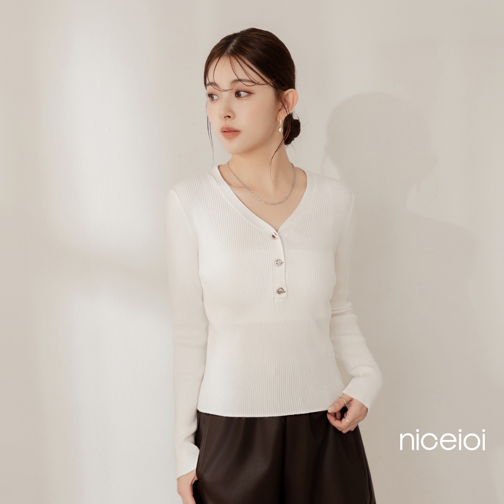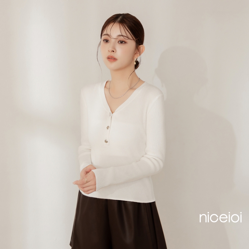 niceioi【特惠】簡約OT釦半開襟坑條針織上衣 (共2色) 女裝