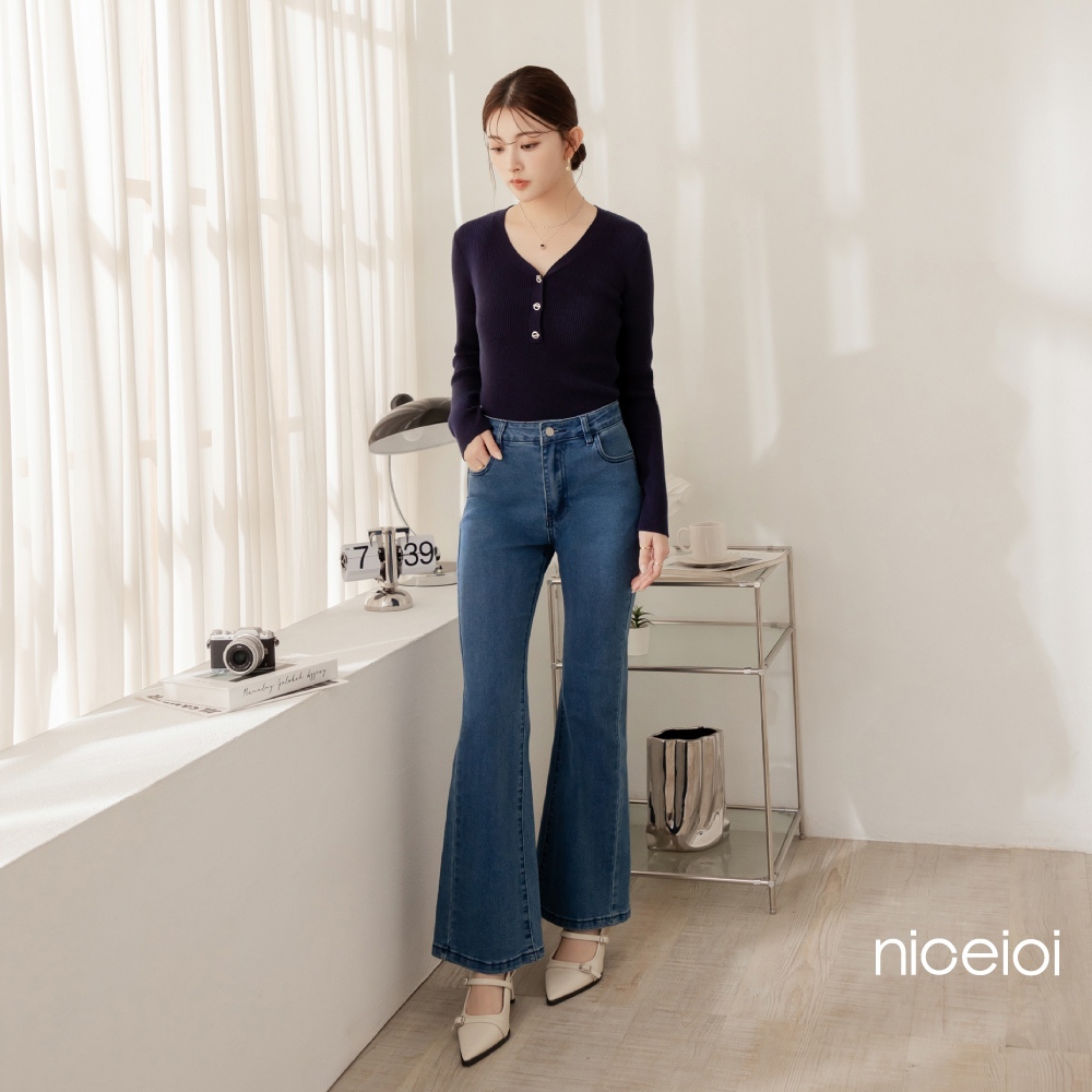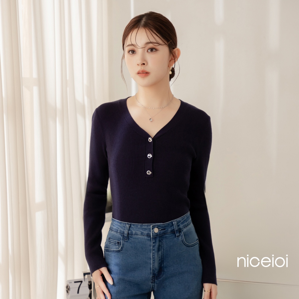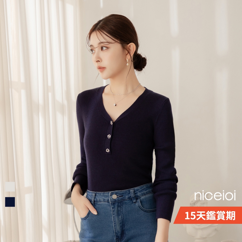 niceioi【特惠】簡約OT釦半開襟坑條針織上衣 (共2色) 女裝深藍,M|深藍,L|深藍,XL|白,S|白,M|白,L|白,XL|深藍,Sniceioi 官方旗艦店