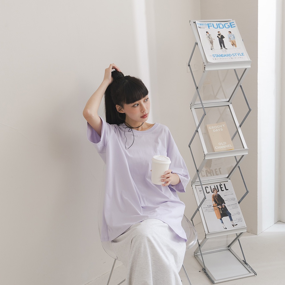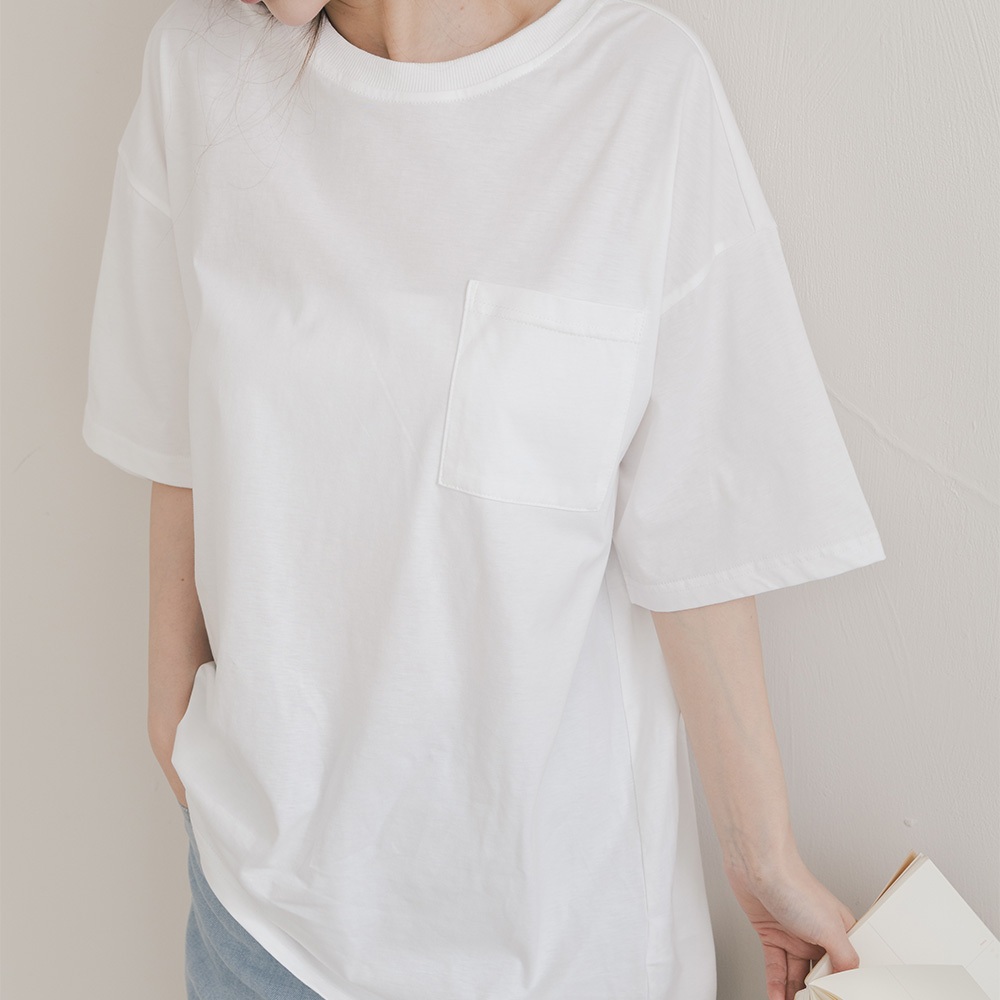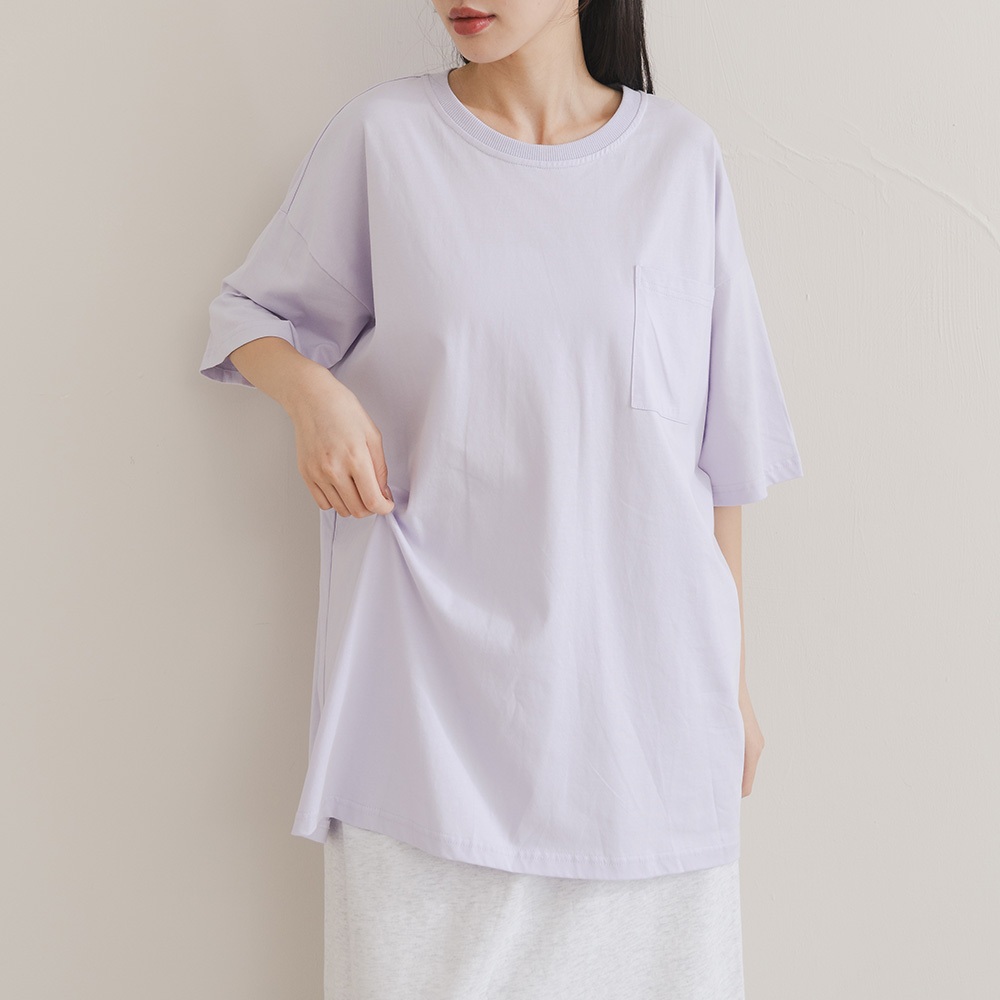 QUEENSHOP_ S 女裝 短袖 涼感素面前口袋落肩短袖上衣 五色售 現+預 【01190228】黑|白|綠|紫|花灰T-shirtsQUEENSHOP